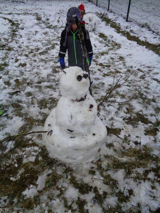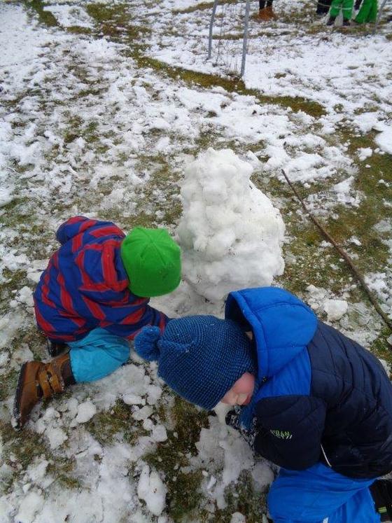 Hurra, endlich Schnee! Die dünne Schneeschicht wurde sofort ausgenützt, um einige Erfahrungen mit dem nassen Element zu machen. Es wurde gerutscht, geformt und sogar einige Schneemänner wurden gebaut. Für die Kinder war es ein tolles Erlebnis.