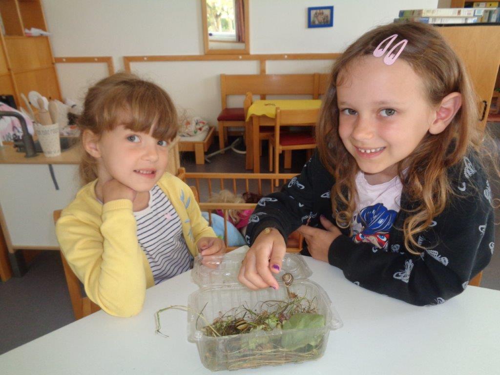 Große Freude bereitet derzeit den Kindern Schnecken zu sammeln, diese zu beobachten und über deren Leben zu hören.