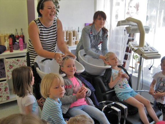 Wir besuchten das Friseurgeschäft von Verena Hangl. Die Freude war groß, denn die Kinder durften aktiv mitarbeiten und sich aber auch schön machen lassen. Natürlich wurde auch im Kindergarten ein Friseurgeschäft zum Nachspielen eingerichtet.