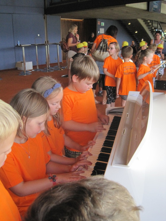 Die Schulanfänger besuchten das Brucknerhaus in Linz. Dort konnten die Kinder verschiedenste Instrumente ausprobieren und erlebten eine kindgerechte musikalische Vorführung.