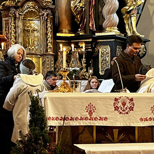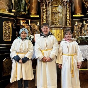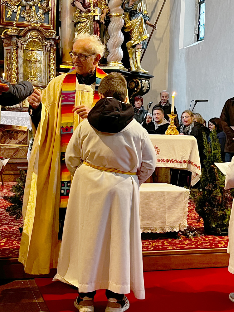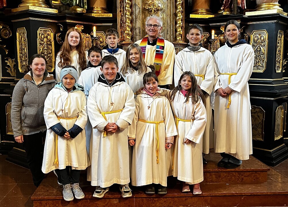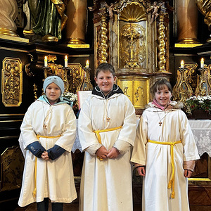 Am heutigen Sonntag fand in unserer Kirche eine feierliche Messe statt, die ganz im Zeichen der Aufnahme von drei neuen Ministranten stand. Der Pfarrer begrüßte die Versammelten und erklärte die wichtige Rolle der Ministranten im Gottesdienst.