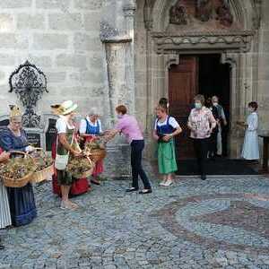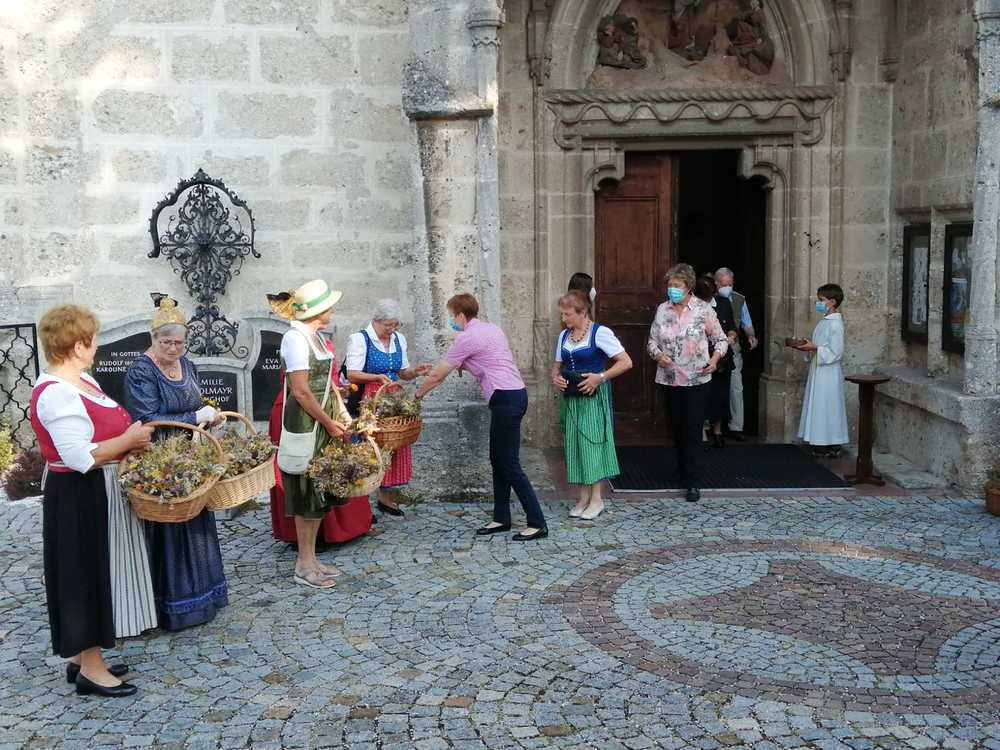 Heuer konnten wir wieder die Rüstorfer Kirchengemeinschaft mit unseren Kräuterbüscherl erfreuen. Von den Frauen wurden 170 Büschel gebunden, im Gottesdienst gesegnet und nach dem Gottesdienst verteilt.