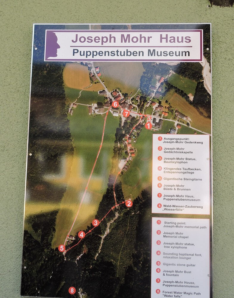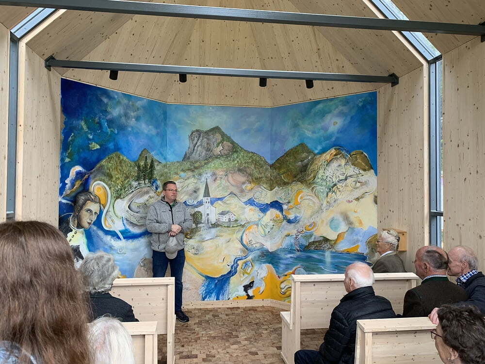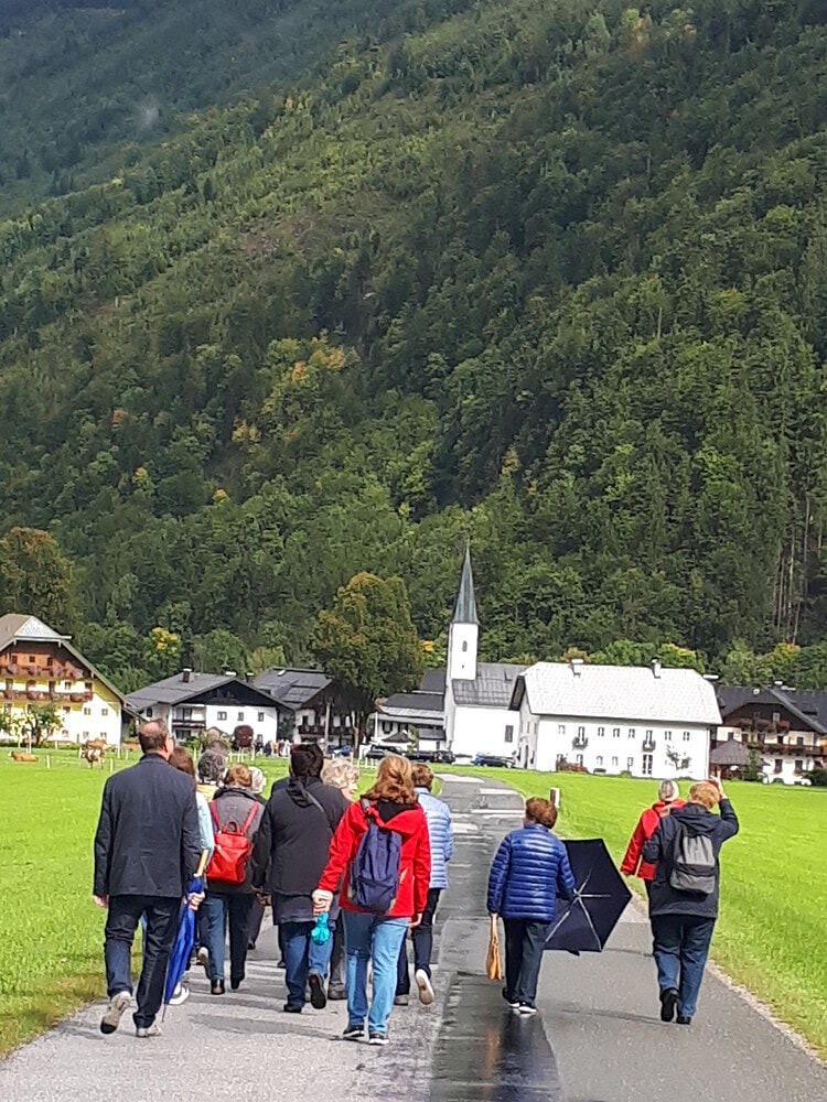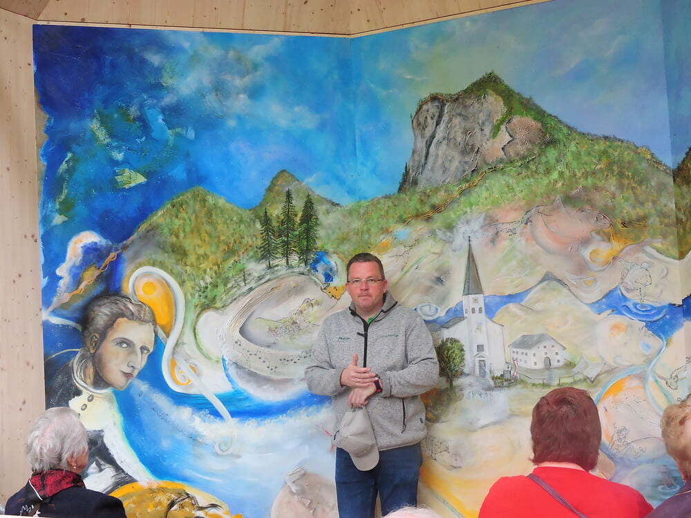 Anschließend führte uns Herr Ebner jun. auf dem im Sommer 2018 eröffneten Joseph Mohr Gedächtnisweg vom Ortszentrum in Hintersee zur Joseph Mohr Gedächtnis Kapelle. Seine interessanten und teilweise sehr amüsanten Ausführungen und Anekdoten über das Leben von Joseph Mohr erheiterten uns.
