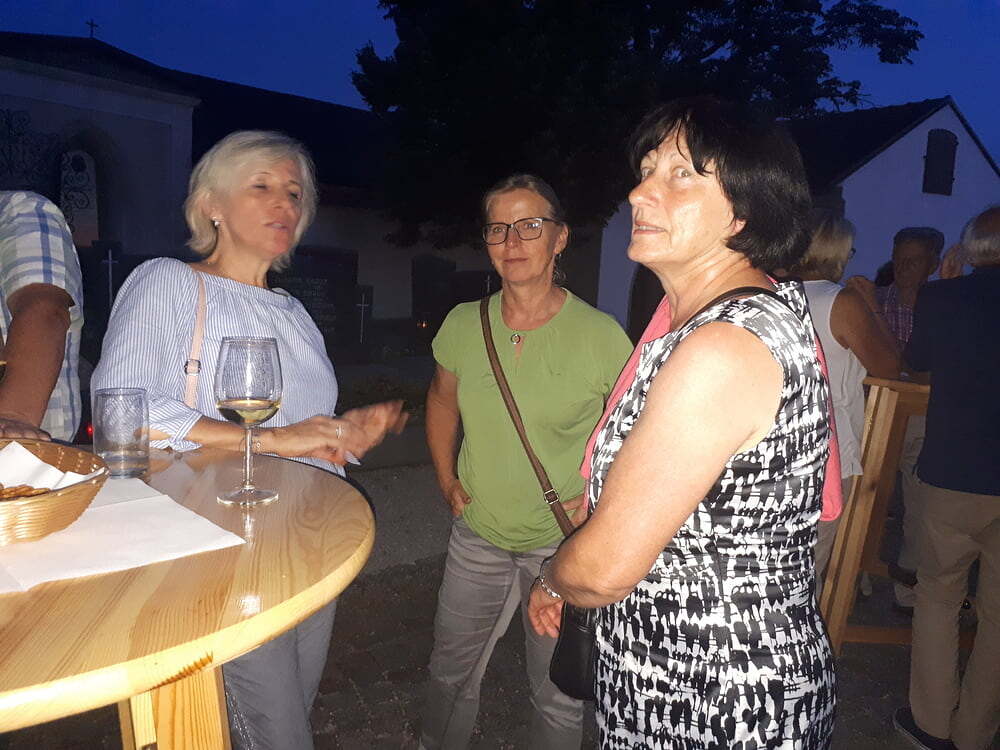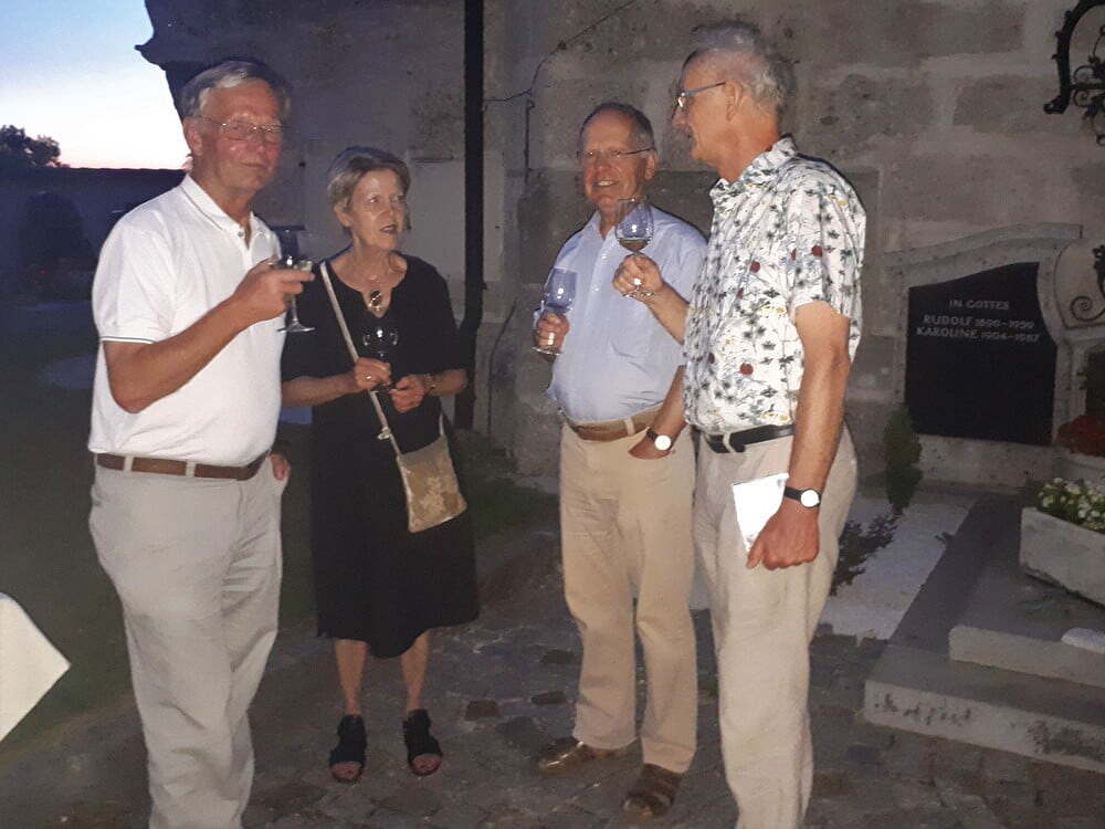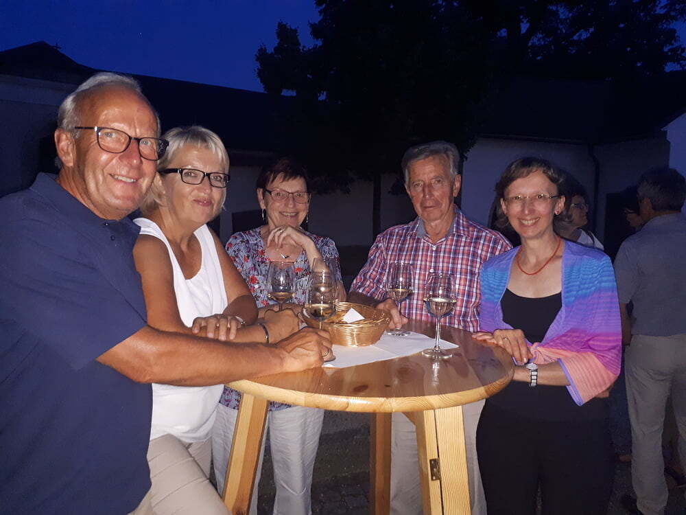Das laue Sommerwetter bot sich im Anschluß bestens für eine Agape und es gab genügend Möglichkeit für Gespräche mit den jungen, faszinierenden und charmanten Musikern. Dabei verwöhnten uns Gerlinde und Josef von der Loitothek mit kühlen Getränken.