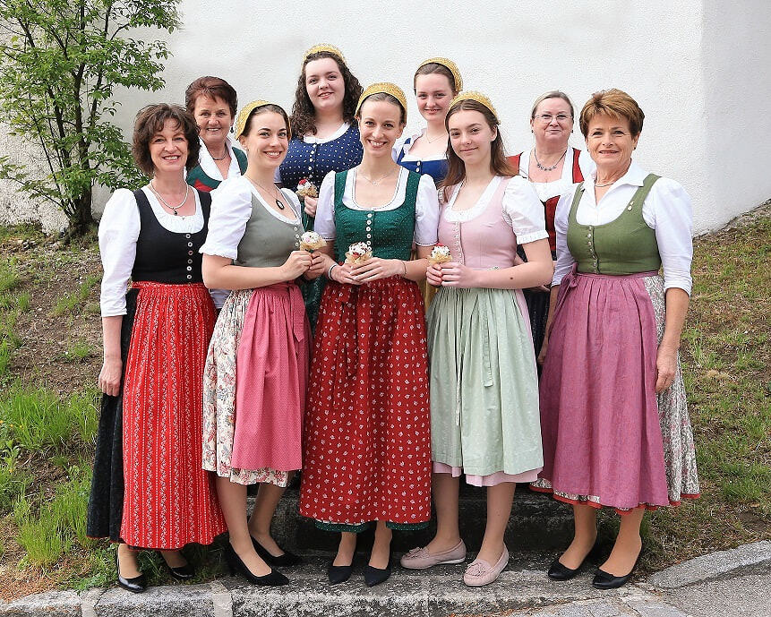 Diese werden im Alter zwischen 10 und 30 Jahren getragen, bzw. bis zur Hochzeit. Mit diesem Band finden auch die Mädchen gefallen an dem Brauchtum, die bereits zu groß für das Goldhäubchen sind.