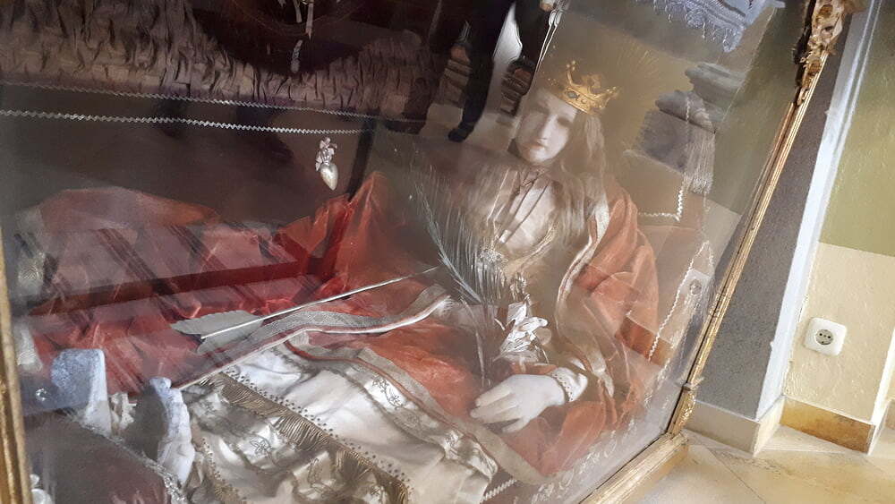 Sehr beeindruckend war auch die Erzählung über die Hl. Philomena, welche in einer Nische unter dem Anna-Alter, in einem Reliqienschrein, dargestellt ist.