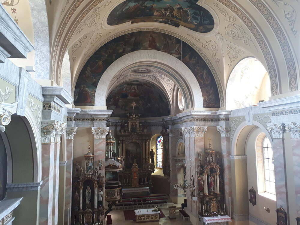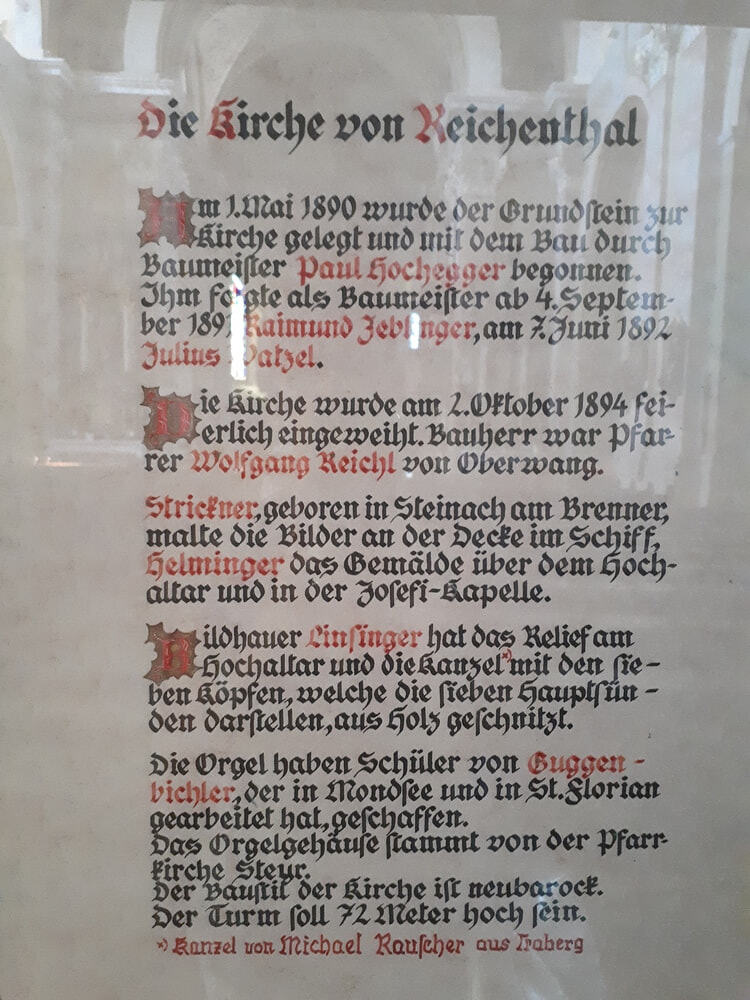 In der anschließenden Kirchenführung berichtete uns Herr Gerhard Weichselbaum äusserst interessant über den Bau und die Geschichte der Reichenthaler Pfarrkirche, welche auch "Mühlviertler Dom" genannt wird, weil sie die größte Pfarrkirche des Mühlviertels ist. 1890 wurde mit dem Bau der neuen Kirche begonnen: man hat einfach um die alte herum und darüber gebaut. Die alte Kirche hat man als Gerüst genutzt.