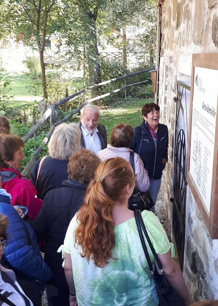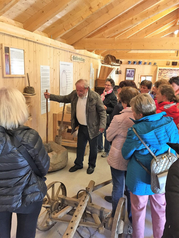 Anschließend genossen wir im örtlichen Gasthaus Preinfalk ein köstliches Mittagessen, bevor wir dann im Mühlendorf eine Führung durch das Freilichtmuseum "Hayrl" machten. Einige begeisterte die alte Mühle, andere waren am Brotbackhäusl interessiert. Auch die Dorfschmiede und das Venezianergatter, mit dem noch immer gesägt werden kann, gehörte zum Programm. Eine weitere Sehenswürdigkeit war das alte Feuerwehrzeughaus oder die umfangreiche böhmische - österreichische Glassammlung.