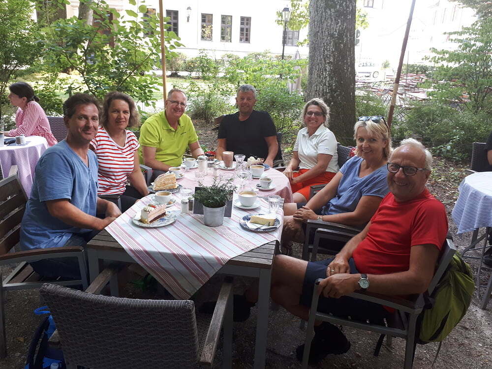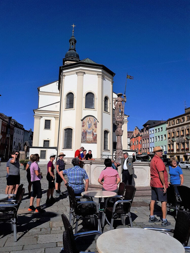 3. Tag: Wieder strahlender Sonnenschein und sehr heiß. An erster Stelle stand an unserem letzten gemeinsamen Tag eine Stadtführung in der Stadt Traunstein. Mit unglaublich Interessantem und Geschichtlichem über die damalige Salzgewinnung und verschiedene Persönlichkeiten aus Traunstein, wie z.B. dem Vater von Josef Ratzinger, Ludwig Thoma, Thomas Bernhard und einige mehr, fesselte uns der Stadtführer mit seinen ausführlichen Informationen.