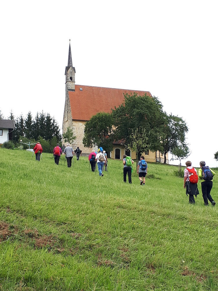1. Tag: Aufgrund des starken Regens verlegten wir den Start auf 13:00 Uhr, wodurch wir einen sehr erholsamen Vormittag gewannen. In der Pfarrkirche Waging begannen wir unsere Pilgerwanderung mit einer kurzen Andacht. Das erstes Ziel war das Kolomannskirchlein am Tachingersee. Der Regen war am Nachmittag auch schon wieder vorbei und wir freuten uns, dass wir die geplante 19 km Strecke, trotz freiem Vormittag, noch bewältigen konnten.