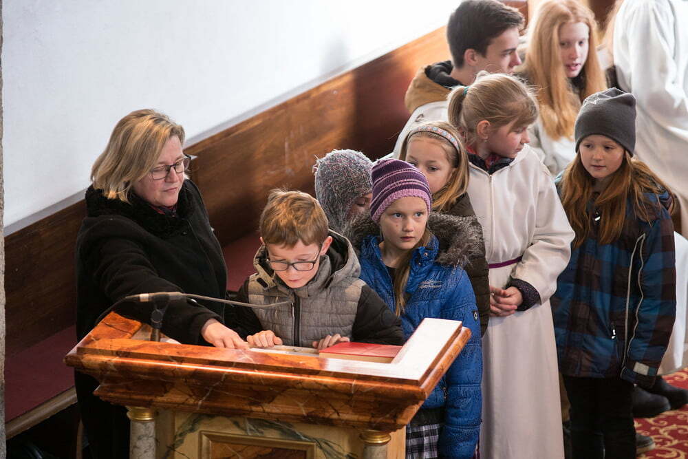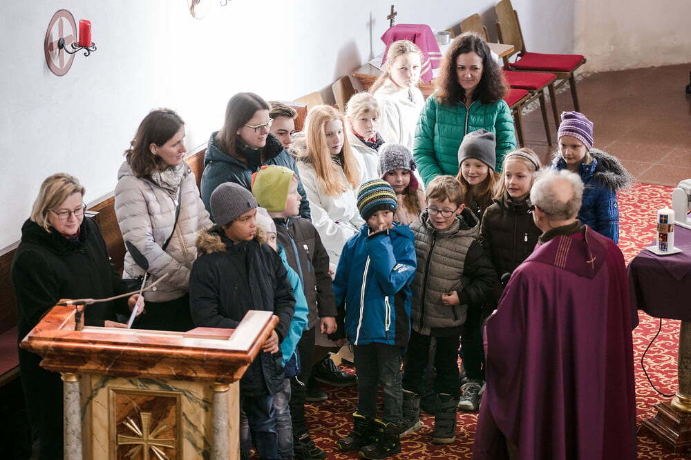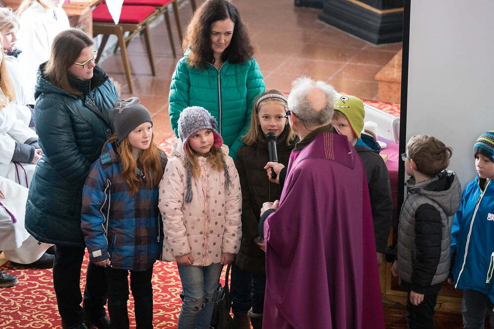 11 Kinder feiern am 27. Mai 2018 ihre erste Heilige Kommunion. Beim heutigen Sonntagsgottesdienst stellten sie sich der Pfarrgemeinde vor: