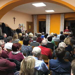 Bei einer "KabaLesung" von Lydia Neunhäuserer mit dem Titel "Lachen ist ansteckend, impfen schützt" wurden unsere Lachmuskeln wieder einmal so richtig trainiert. Eine Mischung aus Gedichten, Texten, kabarettistischen Zwischeneinlagen und Liedern bescherte uns lachbegeisterten Rüstorfer einen humorvollen Abend und am Ende wollte sich keine(r) mehr gegen das Lachen impfen lassen!