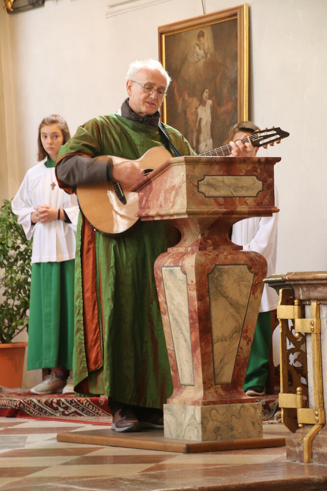 Das Wetter war uns Rüstorfer Wallfahrern wohl gesonnen, ein herrlicher warmer Spätsommertag. Den feierlichen Gottesdienst zelebrierte unser Pfarrer Helmut Part und auch mit der instrumentalen, musikalischen Leitung wurde er betraut. Thematisch im Mittelpunkt stand dabei „Vertrauen“, sowohl das Vertrauen auf Gott als auch das in uns selber. Wir hörten hierzu ein Gedicht von Rainer Maria Rilke.