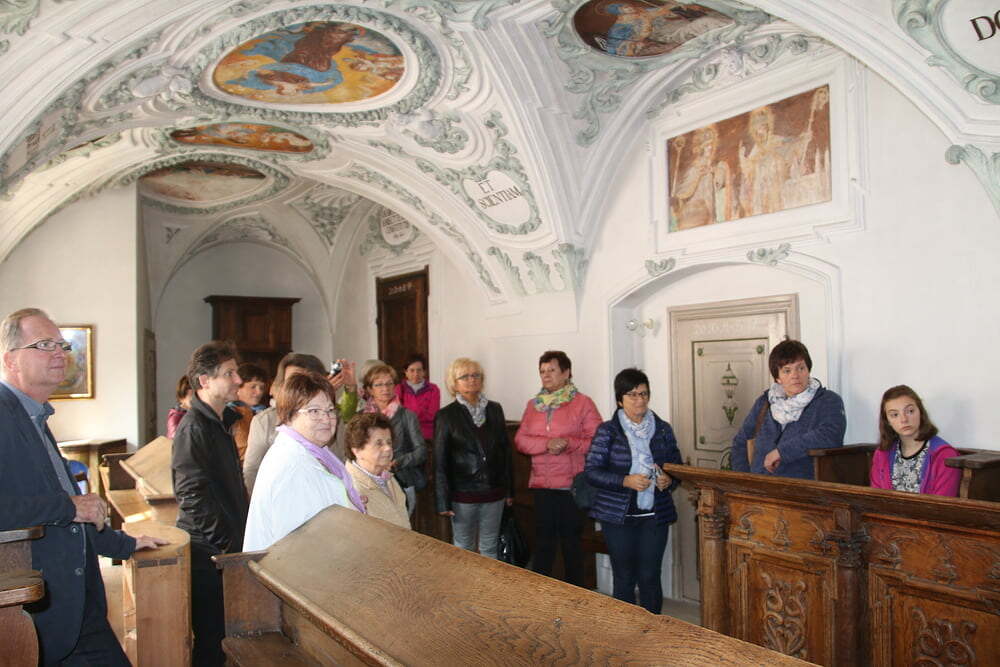 Nachfolgend bekamen wir eine Kirchenführung von Frau Elisabeth Wimmer. Besondere Höhepunkte waren die Geschichte des ehemaligen Augustinerchorherrenstiftes, die Sakristei mit kunstvollen Gegenständen und der Winterchor. Sehr beeindruckt von den euphorischen, persönlich überzeugten Erläuterungen und dem schier unendlichen Wissen von Frau Wimmer über „ihre“ Kirche spazierten wir anschließend rund um den idyllischen Höglwörther See.