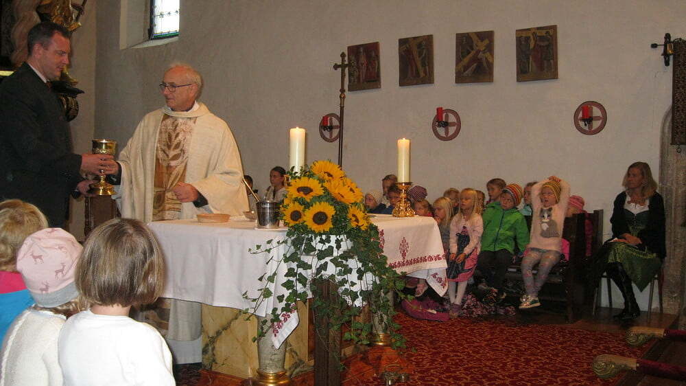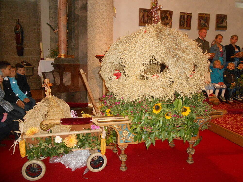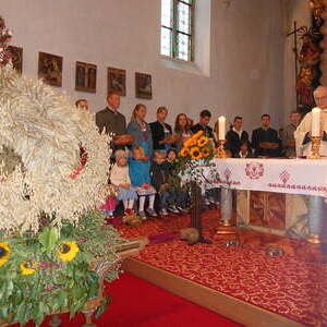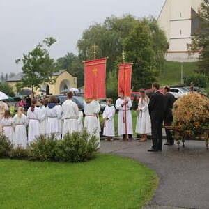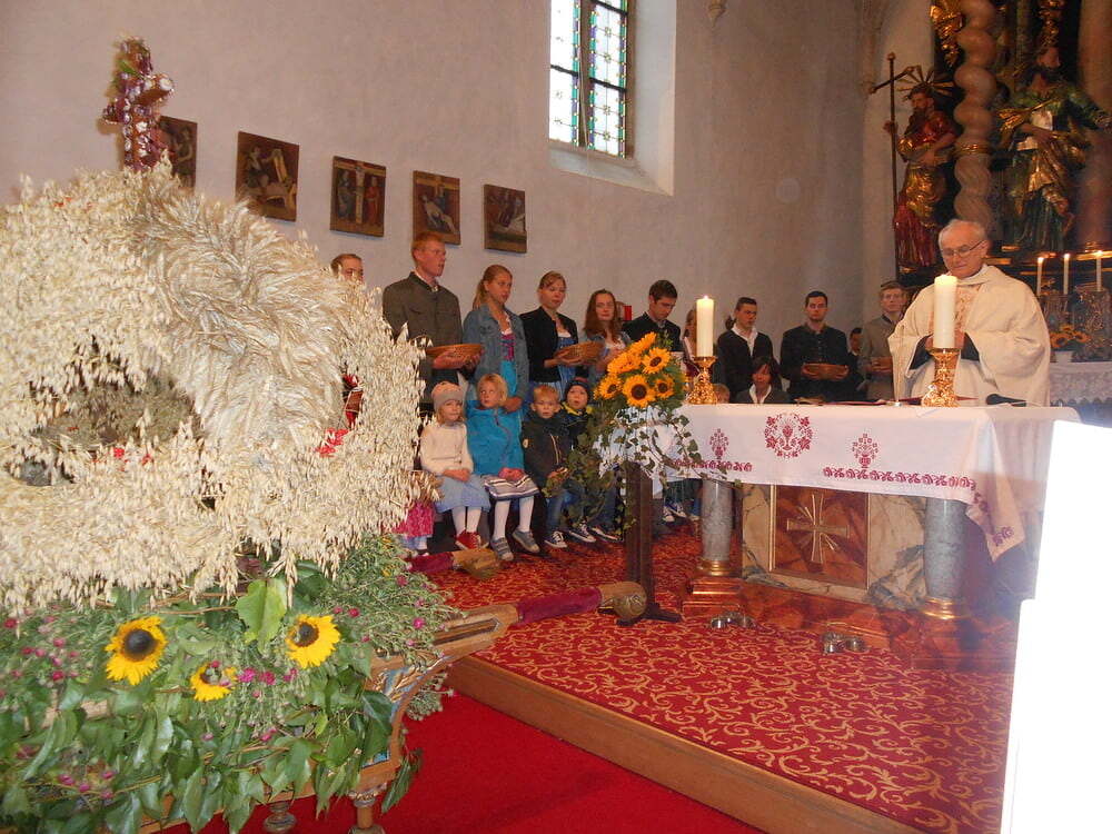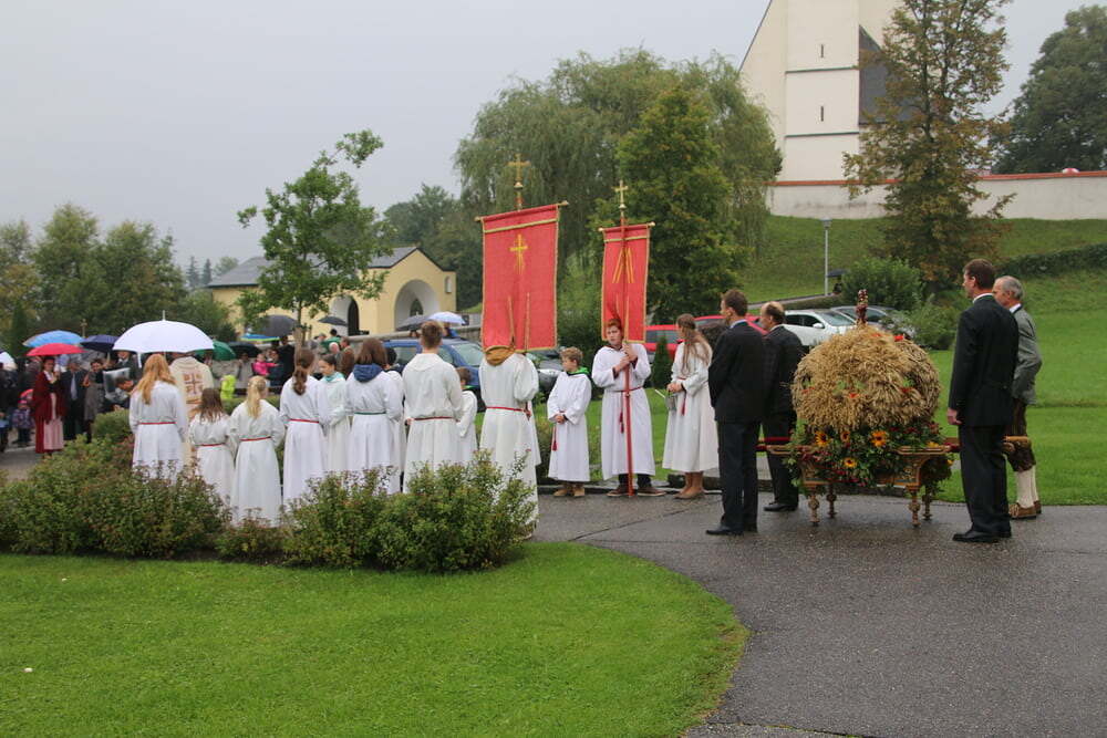 Am Sonntag, den 17. September haben wir unser diesjähriges Erntedankfest gefeiert. Der Regen, auf den die Landwirtschaft im heurigen Sommer mehrmals vergeblich gewartet hat, kam pünktlich um 9:00 Uhr zur Aufstellung beim Pfarrhof.
