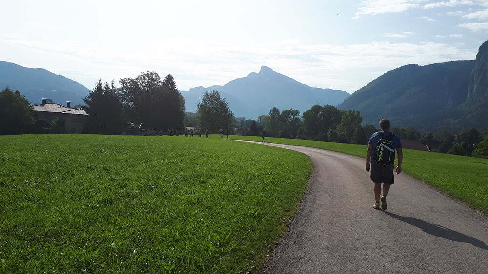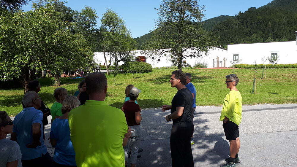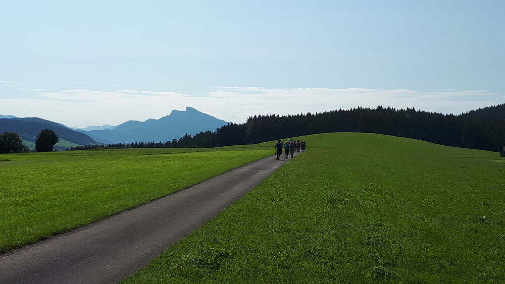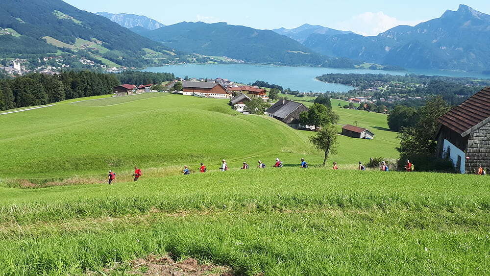 Die erste 20,6 km lange Etappe führte uns bis Pfongau; die nächste mit 25,6 km bis Mondsee und unsere Fußreise endete am dritten Tag nach 16,8 km im Europakloster Gut Aich in St. Gilgen mit einer äußerst interessanten, informativen Führung von Bruder Jurij durch Kloster und Kräutergarten.