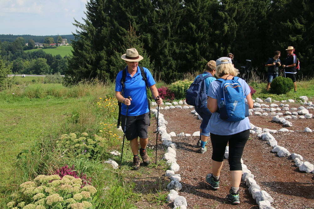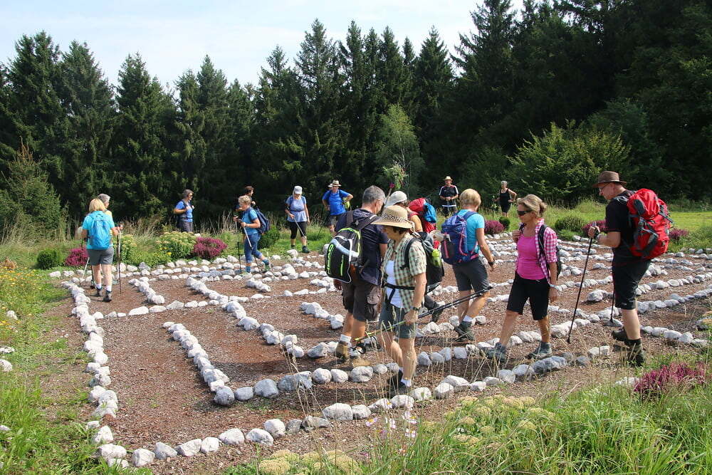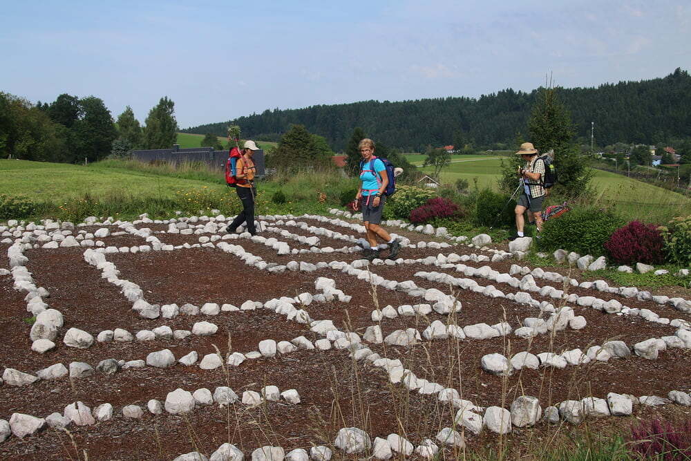 Das herrliche, heiße Sommerwetter trug das ihre zu unserer guten Stimmung bei. Am ersten Tag versuchten wir im Labyrinth unsere Mitte zu finden bzw. wahrzunehmen. Nächsten Tag waren wir besonders beim Schweigend-Gehen achtsam und ehrfürchtig auf uns selbst und auf die atemberaubend schöne Landschaft. Achtsamkeit weckt die Liebe zu allem, was lebt. Was für ein Segen, in so einem schönen Land in Frieden, in Fülle leben zu dürfen!