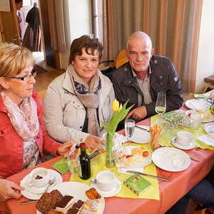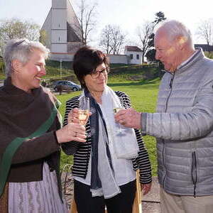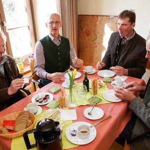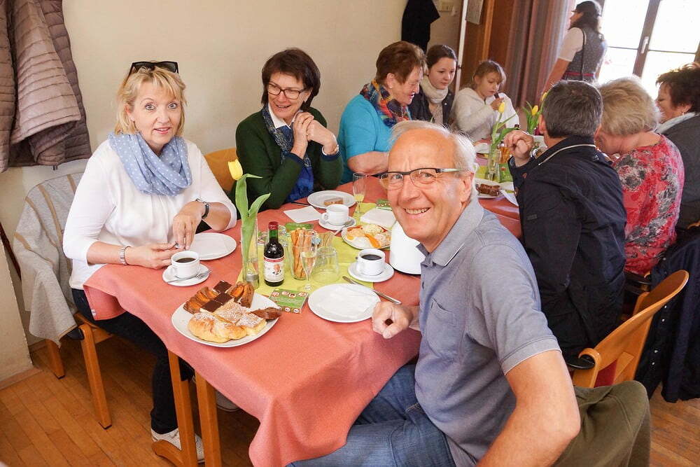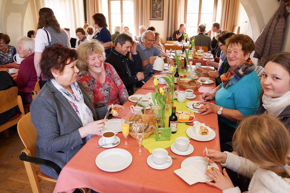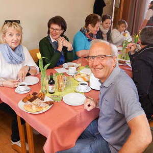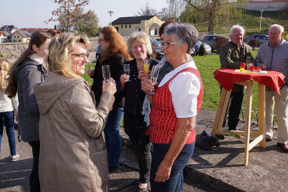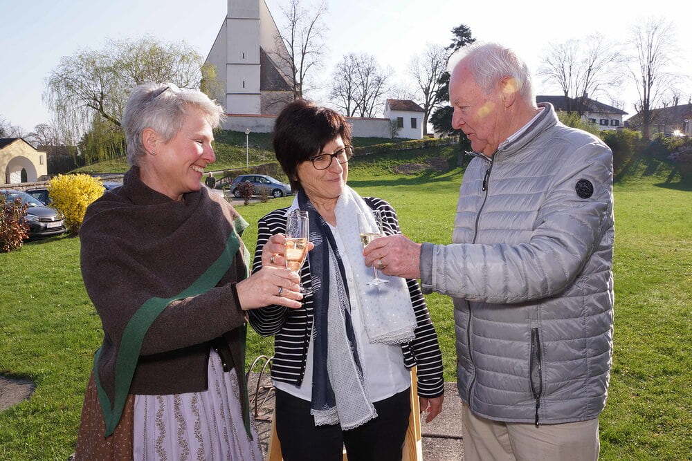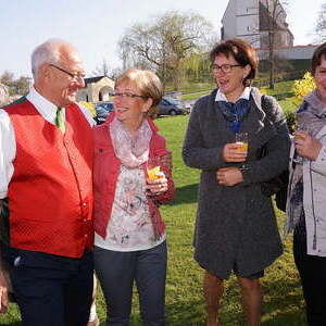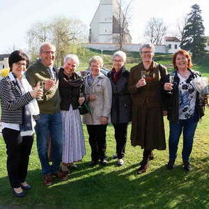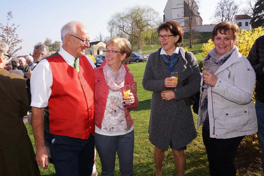"250-Jahre" luden am Sonntag, den 2. April, nach dem Gottesdienst zum Pfarrcafe, welcher im Pfarrhofgarten bei herrlichem Frühlingswetter mit einem Sektempfang begann. Herzlichen Dank für dieses nette, fröhliche Zusammensein bei ausgiebigen Frühstück.