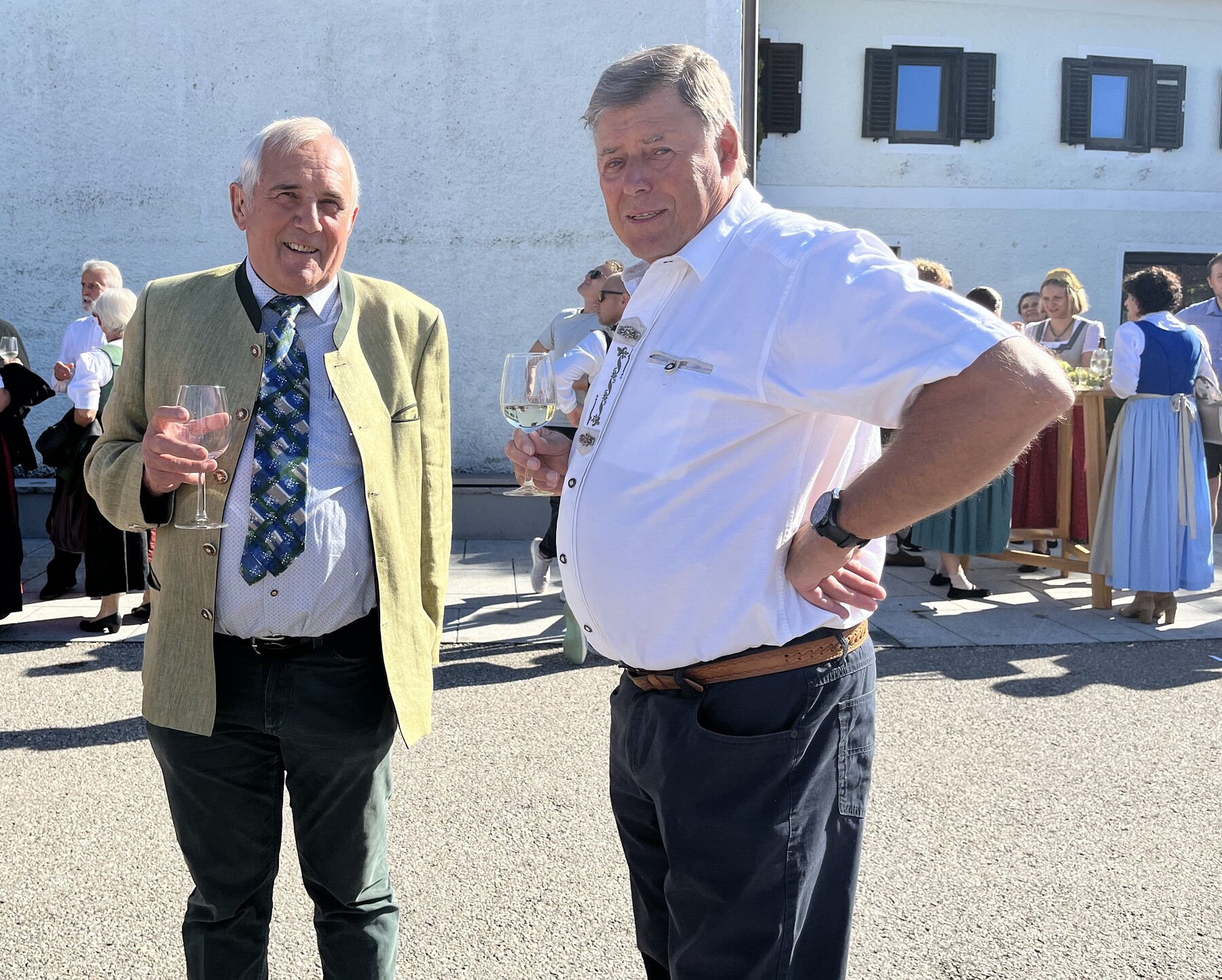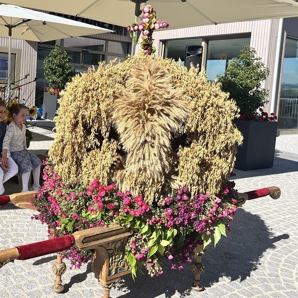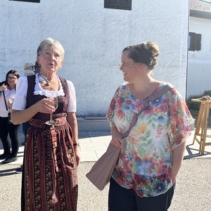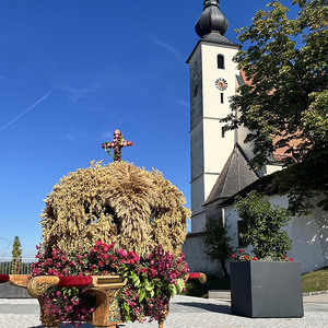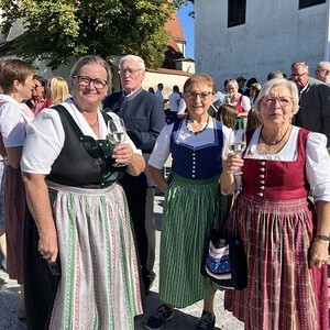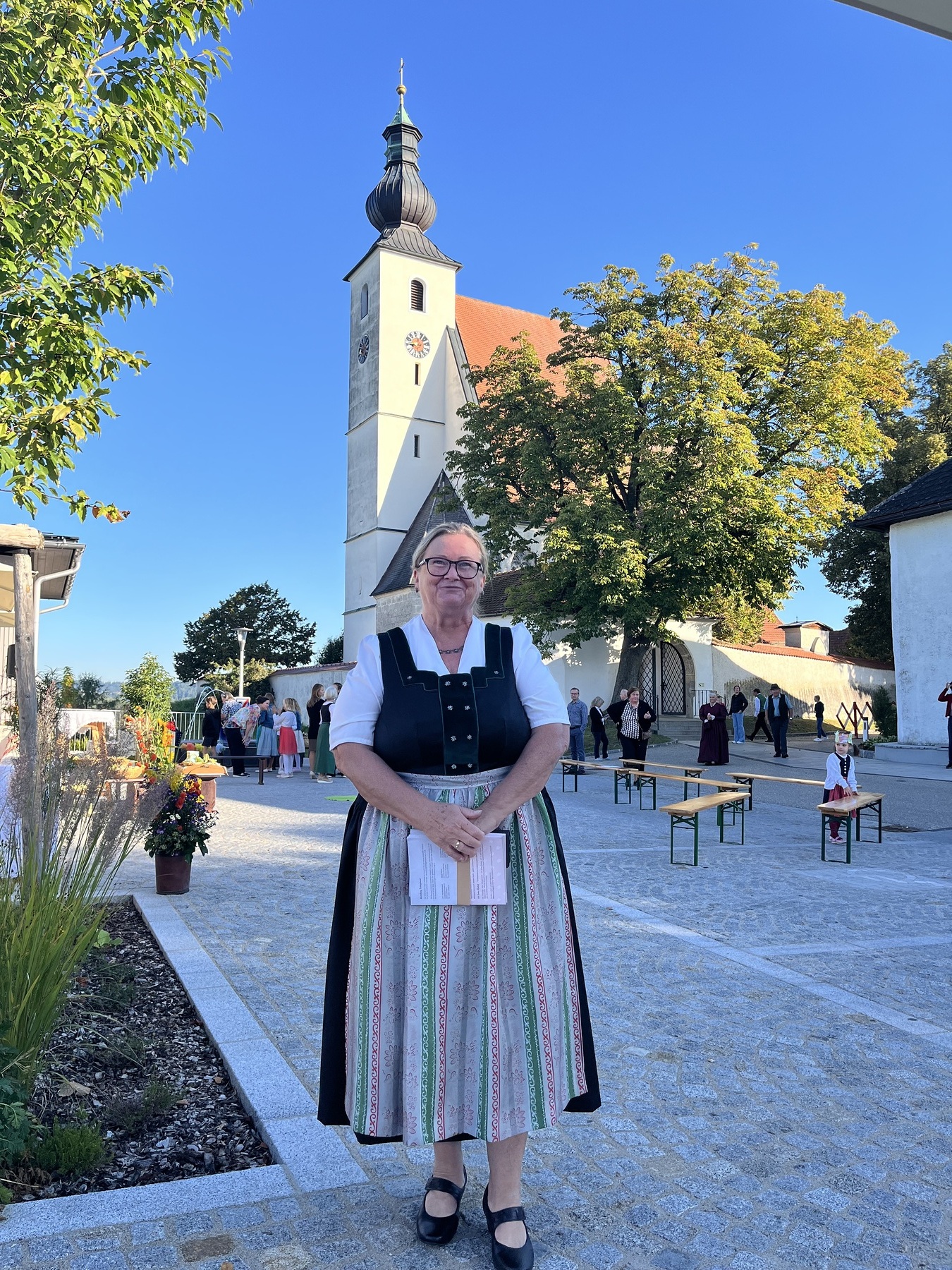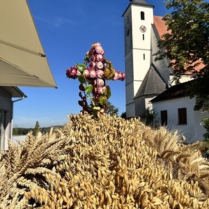 Im Anschluss an den Gottesdienst lud unser schön geschmückter Dorfplatz zum Verweilen ein. Bei Wein, Traubensaft und Brötchen – gebacken von Familie Lizelfelner – konnten wir das Fest in geselliger Runde ausklingen lassen.