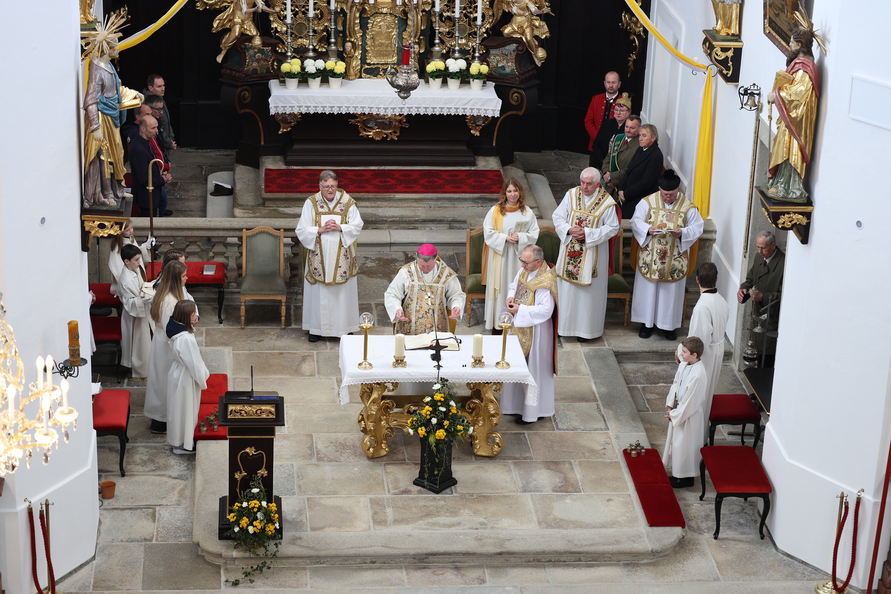 Da nun diese Arbeiten weitgehend abgeschlossen sind, durften wir mit unserem Bischof Dr. Manfred Scheuer, unserem Pfarrer Mag. Raphael Golianek, sowie weiteren, der Pfarrgemeinde Sandl verbundenen Priestern, diesen Festtag begehen.