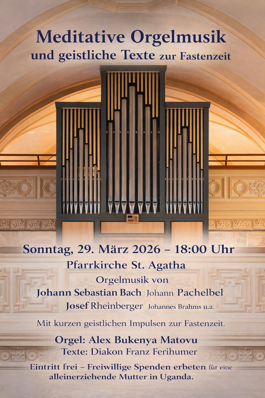 Orgelmusik von Johann Sebastian Bach, Johann Pachelbel, Josef Rheinberger, Johannes Brahms u.a. mit kurzen geistlichen Impulsen zur Fastenzeit.