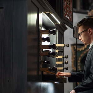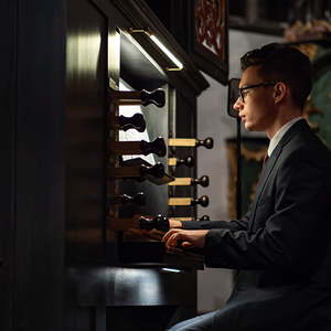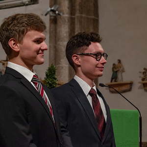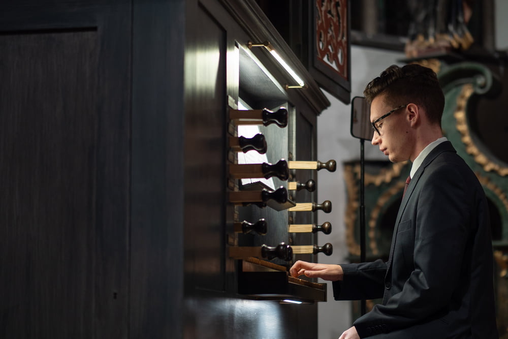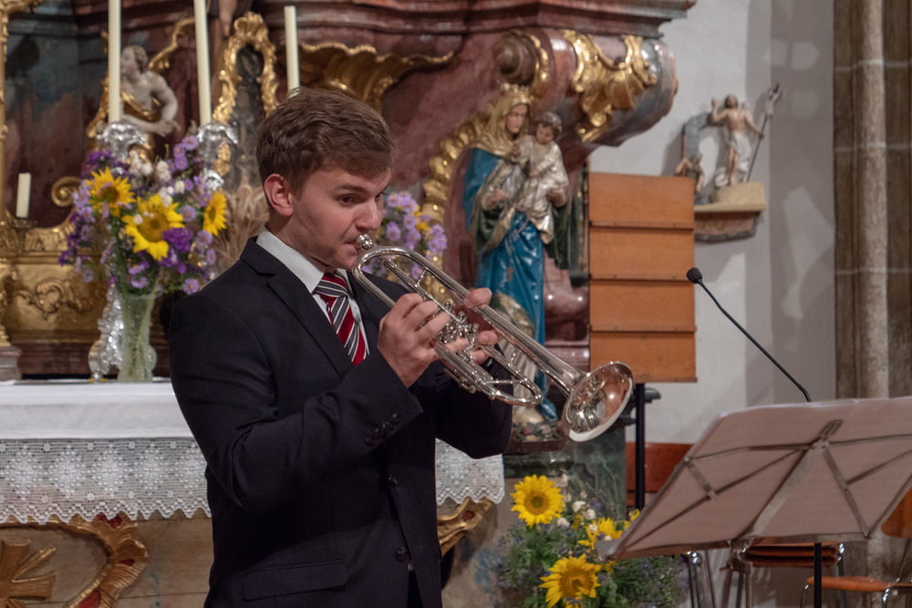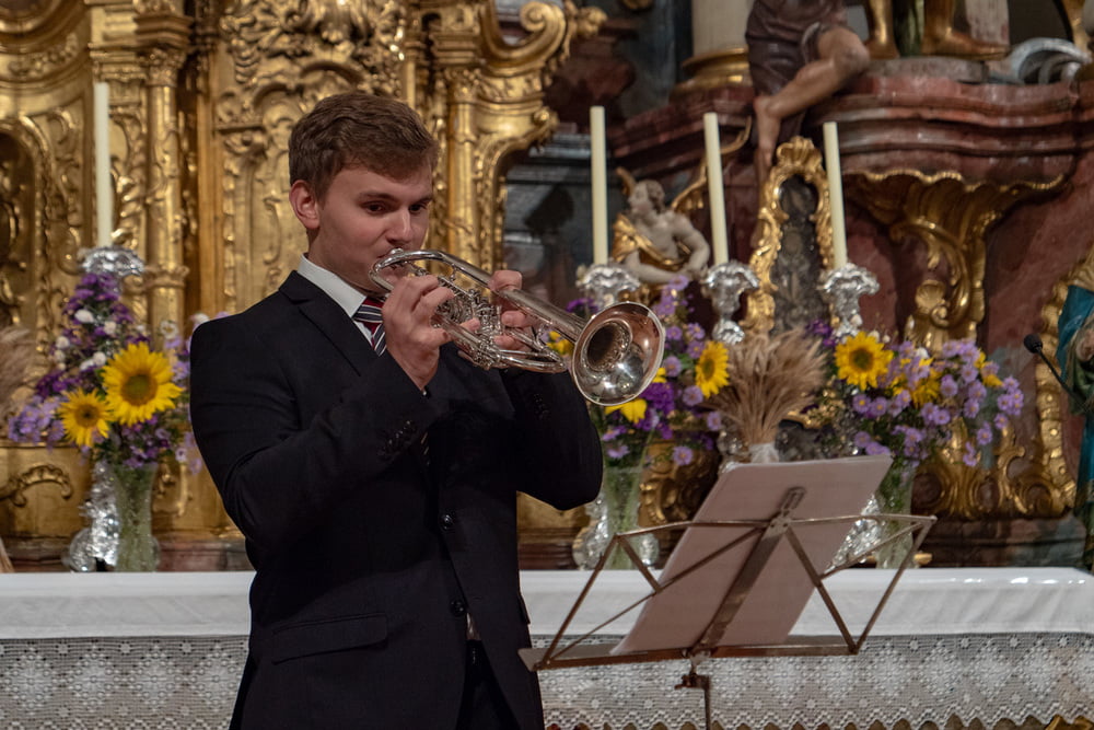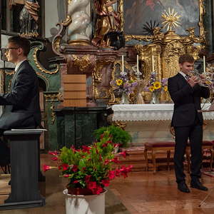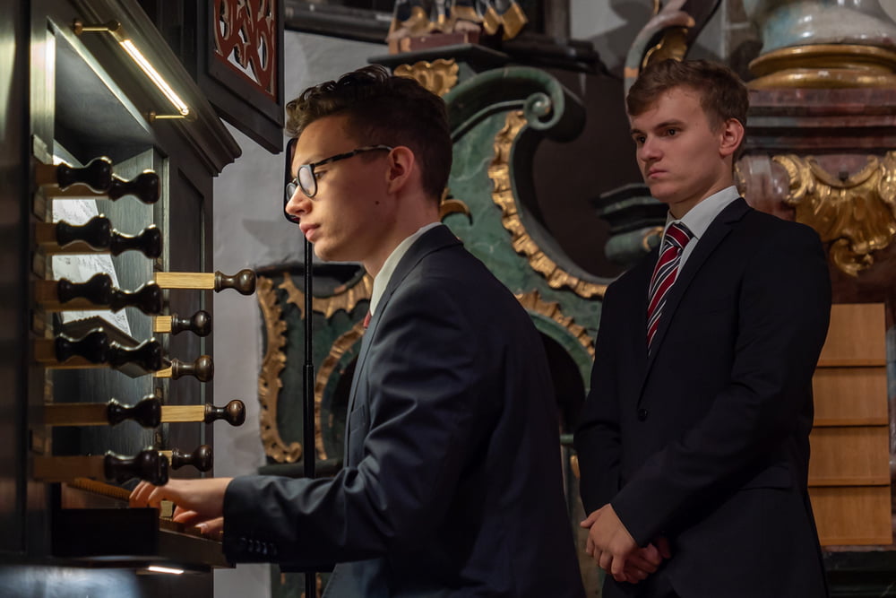 Die beiden Studenten an der Bruckner Universität, Florian Birklbauer an der Orgel und Isaac Knapp an der Trompete,
