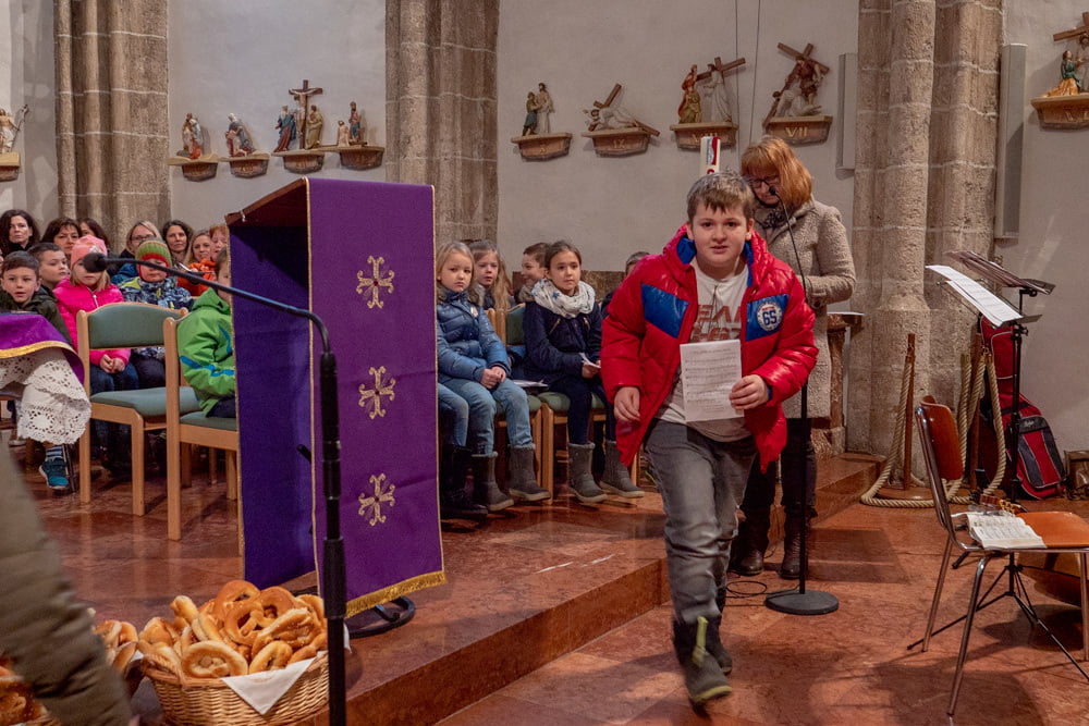 Vorstellgottesdienst der Erstkommunionkinder mit Fastenbrezenverkauf.