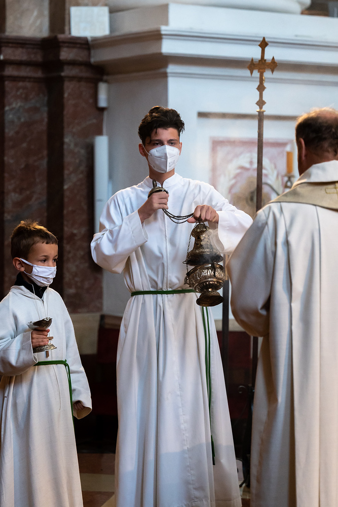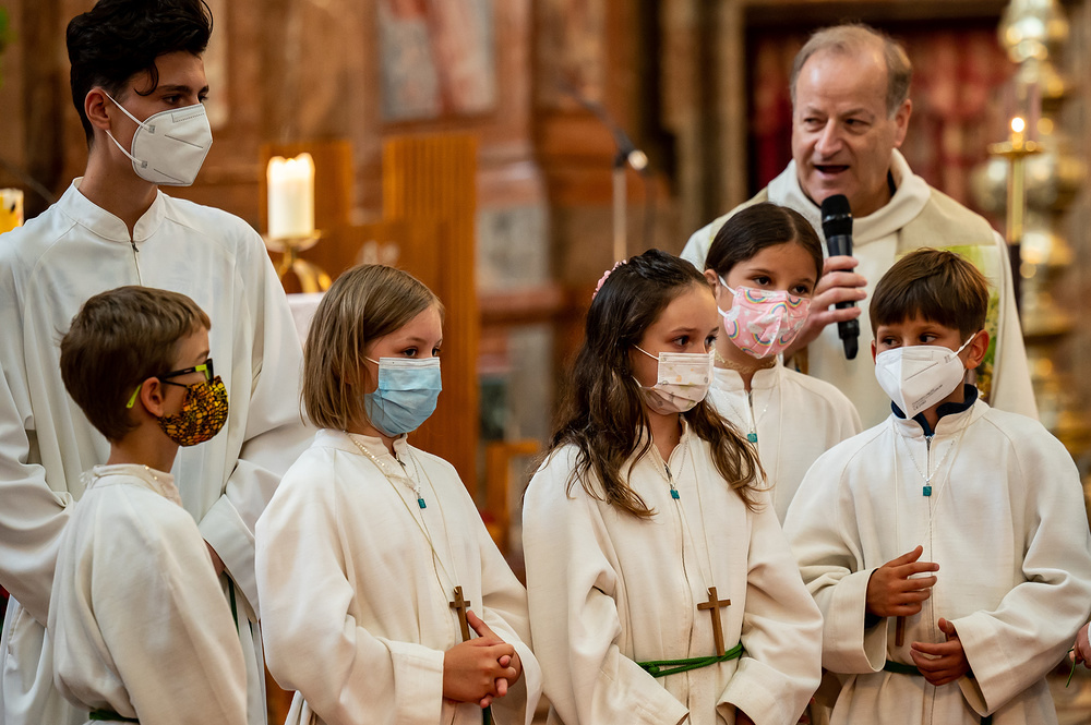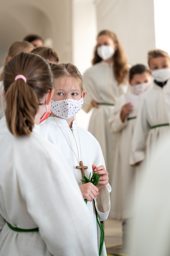 Am Sonntag, den 20.6.2021 um 10 Uhr feierten wir im Familiengottesdienst die Aufnahme der neuen Ministrantinnen und Ministranten. Im Anschluss daran wurde ein Gruppenfoto aller anwesenden Minis gemacht, welche beim Gottesdienst mitfeierten.