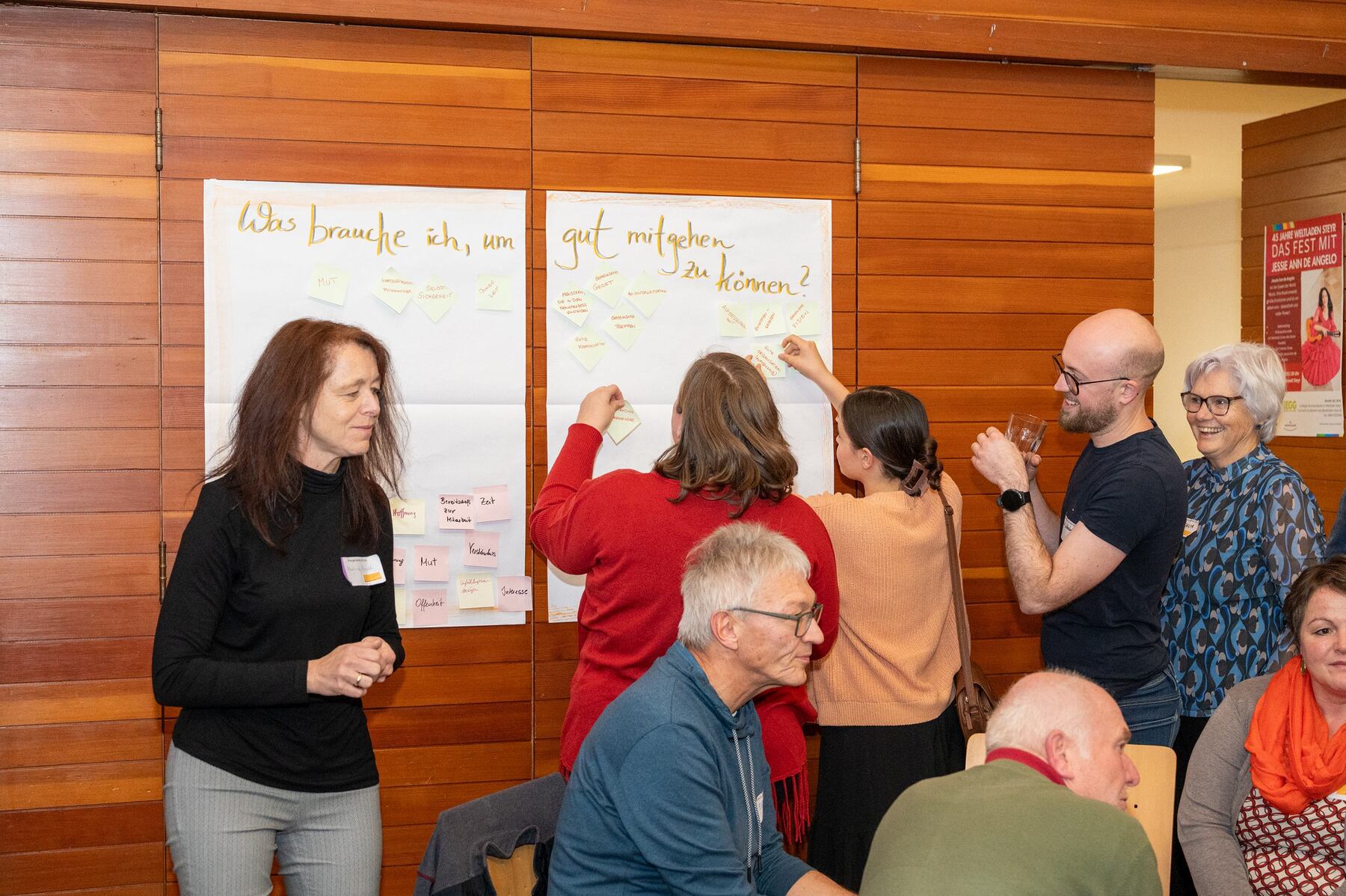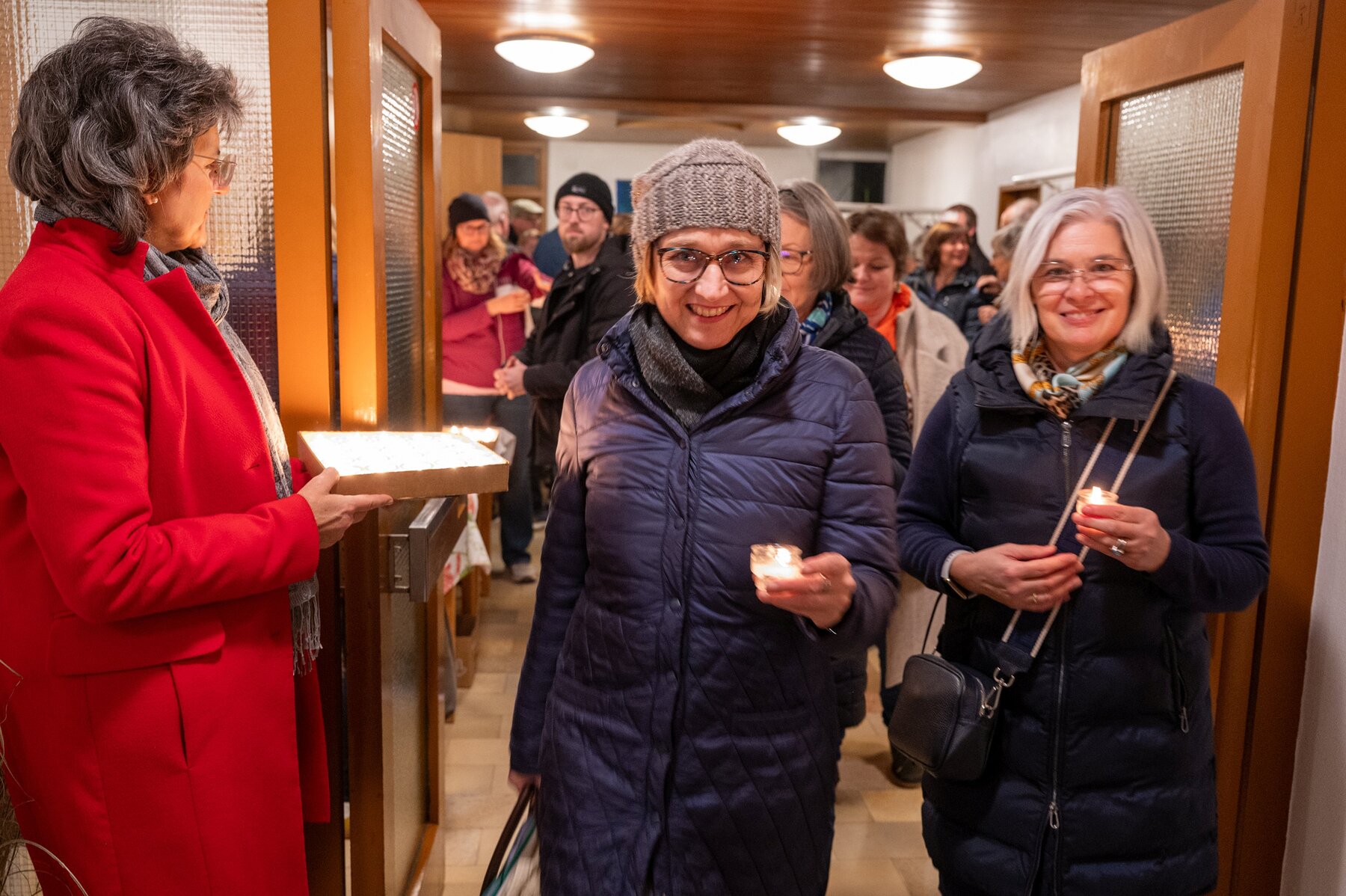 Insbesondere der meditative Impuls vor dem gemütlichen Ausklang war symbolträchtig: Alle Teilnehmen:innen erhielten eine kleine Kerze im Glas und zogen in einer lockeren Prozession zur Kirche. Dort stellten sie ihr Licht auf den Altar – und die vielen kleinen Lichter bildeten einen großen Lichtschein. Dieses hoffnungsvolle Bild, das mit Gebet und Gesang noch bekräftigt wurde, war gleichzeitig die Abschlussbotschaft: Wenn jede und jeder einen Beitrag leistet, und sei er noch so klein, kann gemeinsam etwas Großes und Schönes entstehen. Diese Hoffnung steht nun über dem gesamten Prozess, der die nächsten zwei Jahre dauern wird.