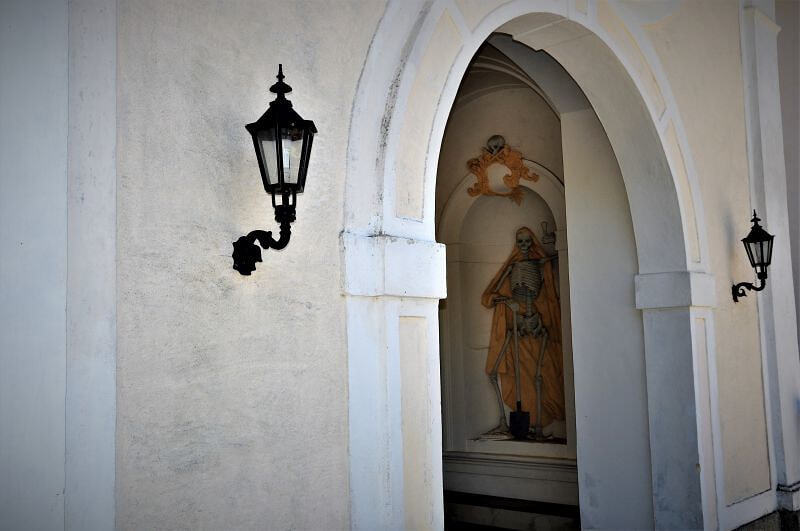 Hier befindet sich auch die Friedhofskapelle, in der die Verstorbenen aufgebahrt werden und den Trauernden eine stille Andacht beim Abschiednehmen ermöglichen.