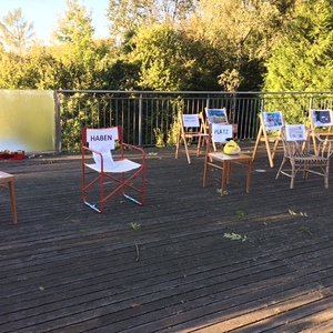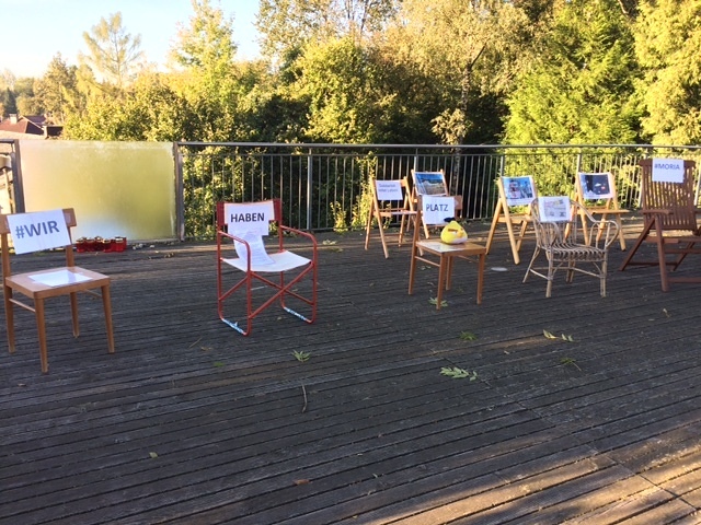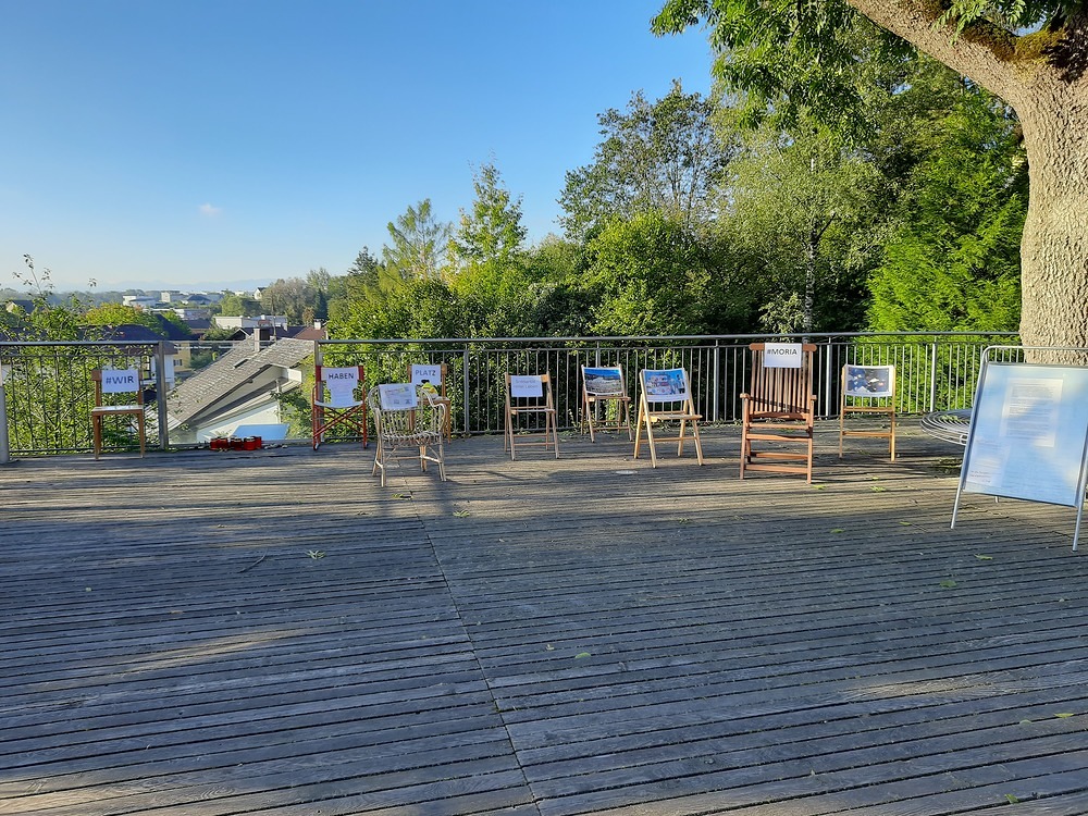 Auch der Verein „Für mich&Du“ aus St. Georgen/G hat am Kirchenvorplatz Stühle (leere Sesseln) aufgestellt, um auf die Situation in Griechenland (Speziell das Camp in Moria) aufmerksam zu machen.