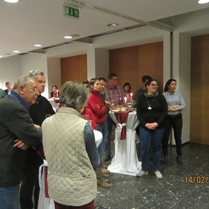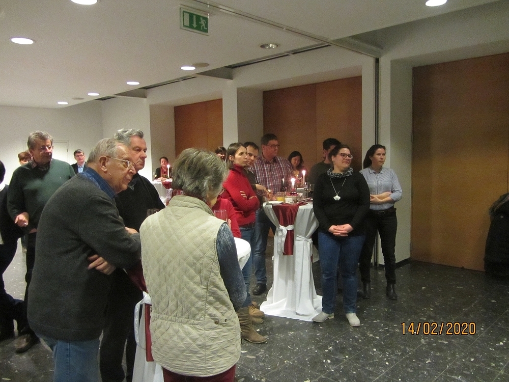 Der Ausklang im Pfarrheim war dank vieler fleißiger Hände eine gelungene Möglichkeit der Begegnung. Bei Stehtischen und einer kleinen Tafel zum Sitzen (wunderschön dekoriert von Elisabeth Schick) gab es bei Getränken und kleinen Imbissen die Möglichkeit zum Austausch zwischen Jung und Alt. Musikalisch wieder umrahmt vom Wöckinger-Duo und Liebesgedichten, vorgetragen von Josef Lugmayr, endete der Abend in einer sehr guten Stimmung.