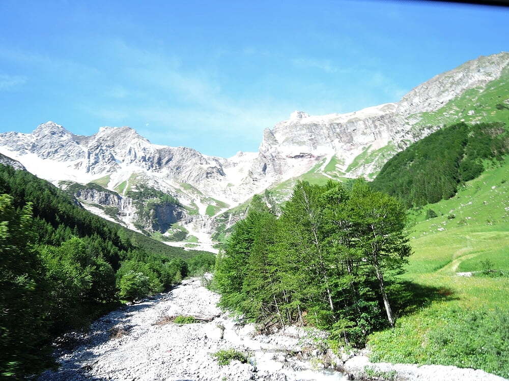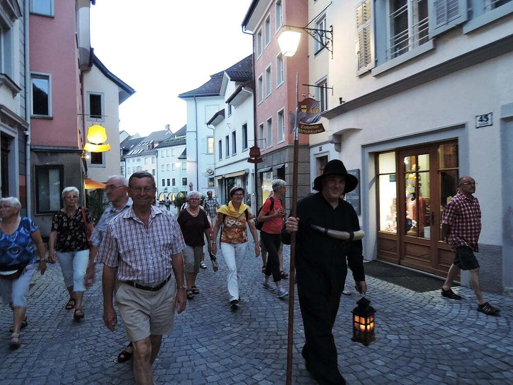 Wir bekamen auf der Anreise im Rahmen eines kleinen Abstechers einen Eindruck vom kleinen Walsertal, auch den Bregenzer Wald mit seiner lieblichen Landschaft und den dort typischen Häusern mit den schindelgetäfelten Wänden lernten wir kurz kennen. Die Stadtführungen in Feldkirch, Dornbirn, Bludenz und Bregenz waren bei hochsommerlichen Temperaturen um die 35 Grad eine schweißtreibende Herausforderung, zur Abwechslung führte man uns aber in die etwas kühleren Bergwelten am Lünersee und auf die Steriser Alpe im Gebiet des Großen Walsertals, einem richtigen Almdorf, das noch in Vollbetrieb zu sein scheint.