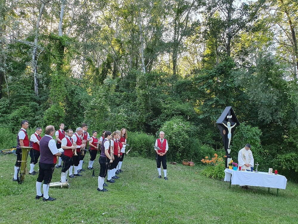 Gemeinsam mit der Marktmusik Luftenberg feierten wir beim Donaukreuz in Abwinden eine Eucharistiefeier. Beim Dämmerschoppen ließen wir den Abend gemütlich ausklingen.
