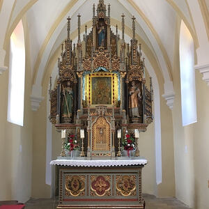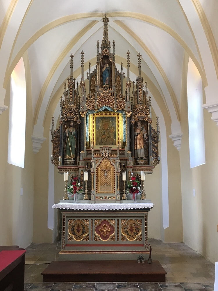 Wo Messwein und Hostien fehlen, hilft es auch nichts, wenn die Wallfahrerinnen ihren eigenen Pfarrer und ihre eigenen zwei Mesnerinnen mithaben. Mit betenden Gedanken bei allen Menschen, die unterwegs sind, feierten sie umso mehr einen würdigen Wortgottesdienst unter dem Gnadenbild.