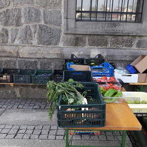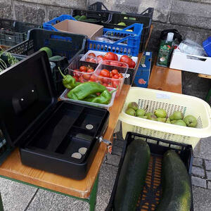 Viele KirchenbesucherInnen nehmen gerne für eine Spende Obst oder Gemüse mit nach Hause. Wenn um ca. 11.00 Uhr der Platz vor der Kirche wieder menschenleer und aufgeräumt ist, können wir eine schöne Summe für in Not geratene PfarrbewohnerInnen im Pfarrbüro abgeben.