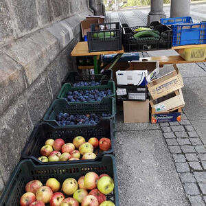 Üppig gewachsenes Obst und Gemüse aus dem eigenen Garten führen zahlreiche PfarrbewohnerInnen mit Freude einem guten Zweck zu: Sie bringen es am Sonntag zum "Gabentisch des Sozialgartls". Wir MitarbeiterInnen des AK Caritas freuen uns, eine große Vielfalt an Früchten entgegenehmen zu können.