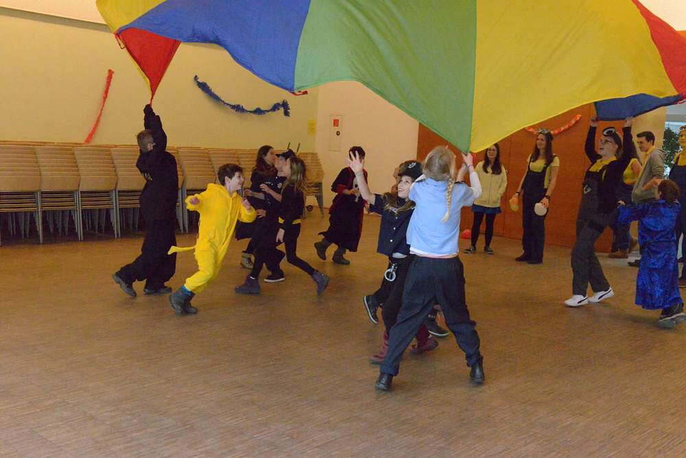 Unser Minion kann nur durch die Hilfe der Kinder wieder Gefühle zeigen. Dafür durften sie Aufgaben wie Dosenschießen, Luftballonspiele oder Schwungtuchspiele erledigen. Auch Fotos in der Fotobox oder Tanzen in der Disco halfen uns um den Minion wieder glücklich zu machen.