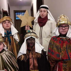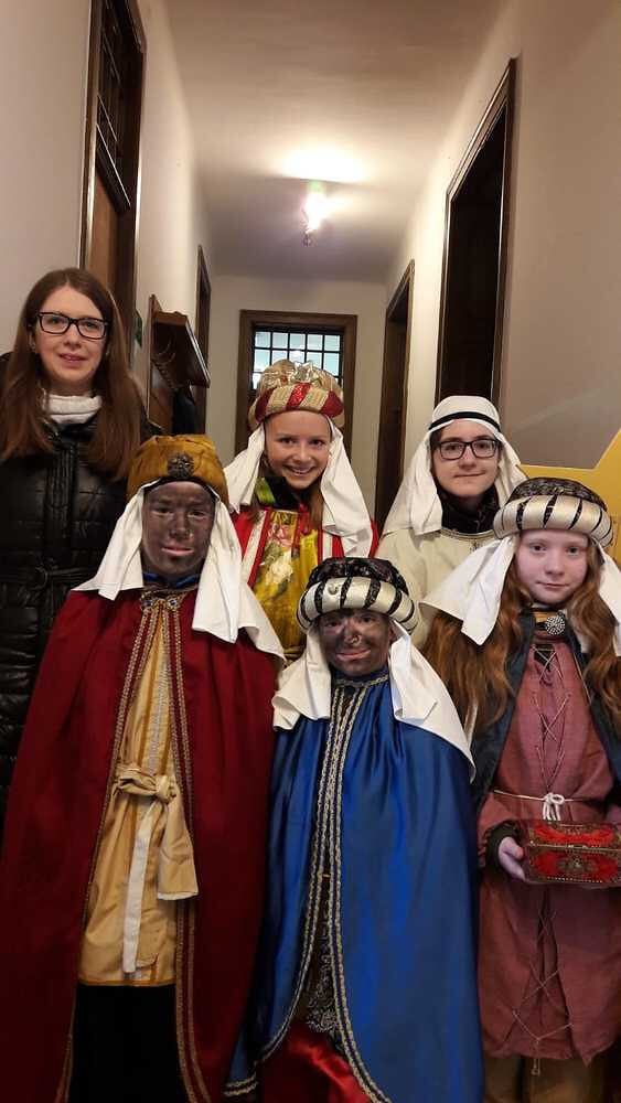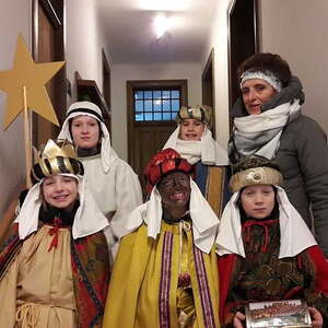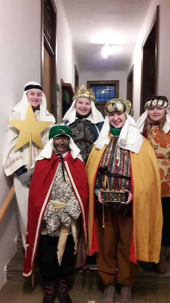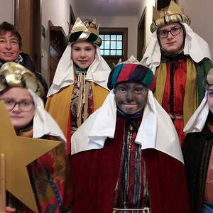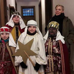**Das sind die Frauen, die die Sternsinger anziehen, die Kleider, Umhänge,