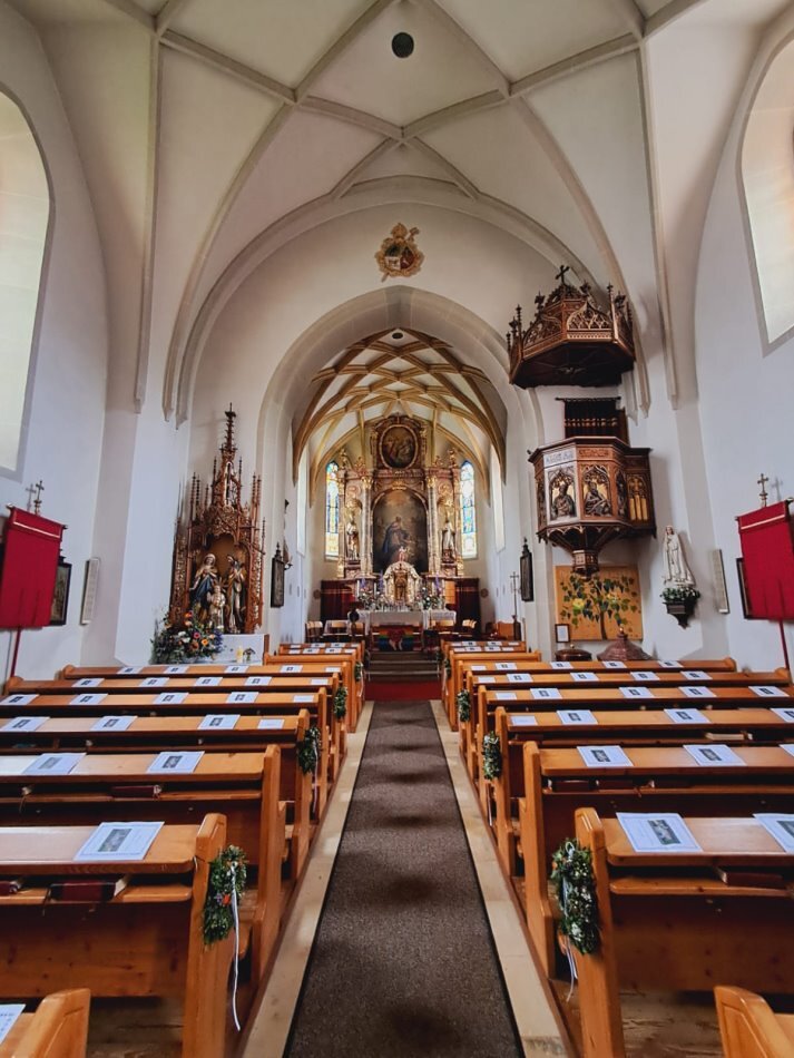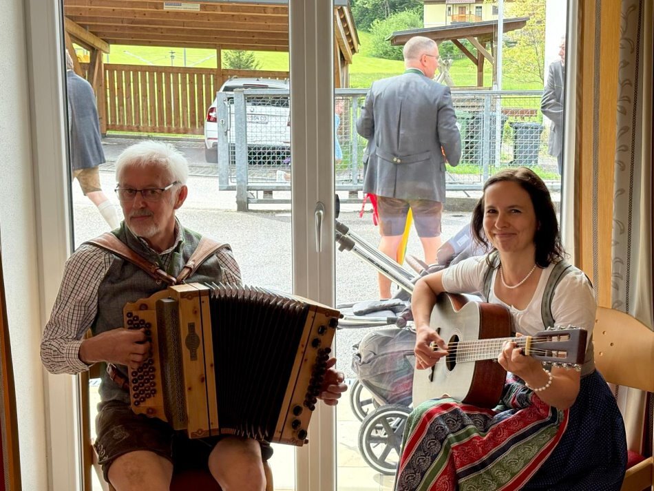Nach der hl. Messe gingen Kinder und alle Mitfeiernden in den Pfarrsaal, wo die Frauen der KFB eine kulinarische Stärkung vorbereitet hatten und Eveline Fischer mit ihrem Papa die Feier musikalisch umrahmten.