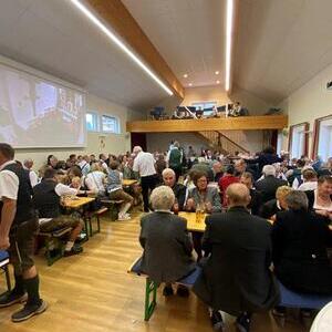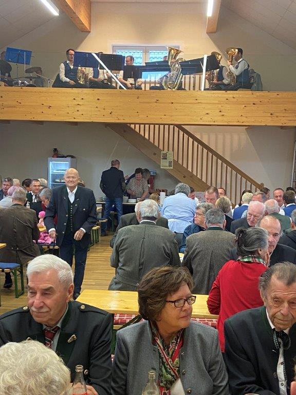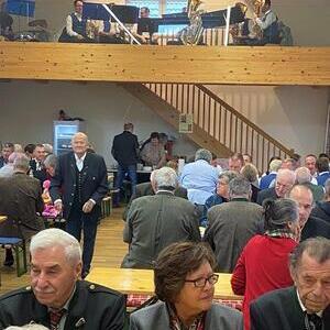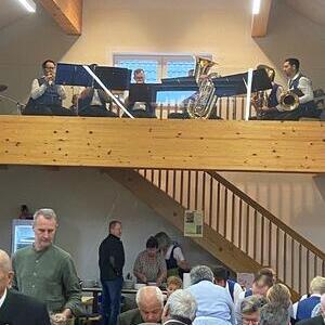 Gewohnt vorzüglich war die kulinarische Versorgung mit Grillkoteletts und Käsekrainer sowie den Beilagen. Bier vom Fass und Kremsmünsterer Weine verwöhnten den Gaumen, den Durst stillten Mineralwasser und Fruchtsäfte. Großen Anklang fanden wieder die exquisiten Mehlspeisen. Durch die Mithilfe der PGR-Mitglieder und mancher Helferinnen und Helfer wurde die große Schar der Gäste zügig bedient und versorgt. Ein Ensemble der Musikkapelle brachte musikalische Feierlichkeit in den Saal.