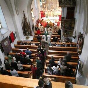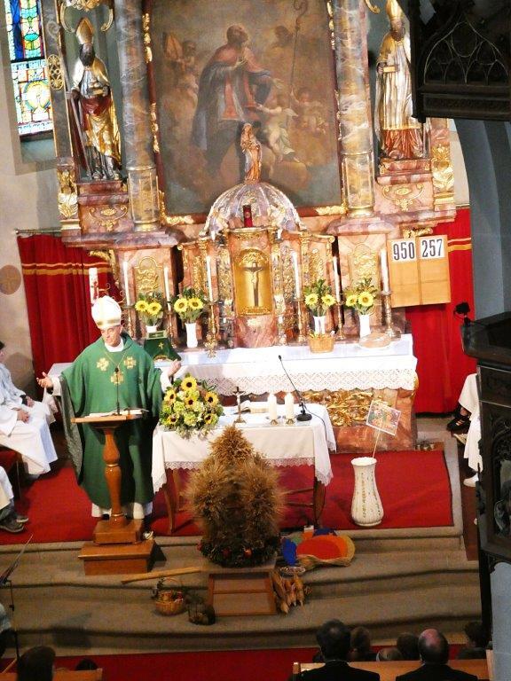 Die Kindergartenkinder sangen nach der Lesung ein frohes Herbstlied, das die Fülle der Früchte und Farben gut vor Augen stellte. Ausgehend vom Tagesevangelium über den armen Lazarus und dem reichen Prasser predigte Abt Bernhard über die Freude, die die Früchte des Glaubens bringen. Mit Hilfe seiner Amtsinsignien, der Mitra, seiner Kopfbedeckung, und dem Hirtenstab erläuterte er seine Aufgaben als Abt von Kremsmünster und seiner Verantwortung für die inkorporierten Pfarren. Die zahlreichen Ministranten beteten die Fürbitten und gestalteten die Gabenbereitung. Nach der Kommunion sangen die Schülerinnen und Schüler der Volksschule ein schönes Segenslied. Die zahlreichen Gläubigen und zahlreicheren Besucher waren angetan und erfreut über den lebendigen und abwechslungsreichen Gottesdienst sowie über die gewinnende und erfrischende Art des Kremsmünsterer Abtes, der alle herzlich einlud, auch die geistigen Angebote des Stiftes zu nutzen.