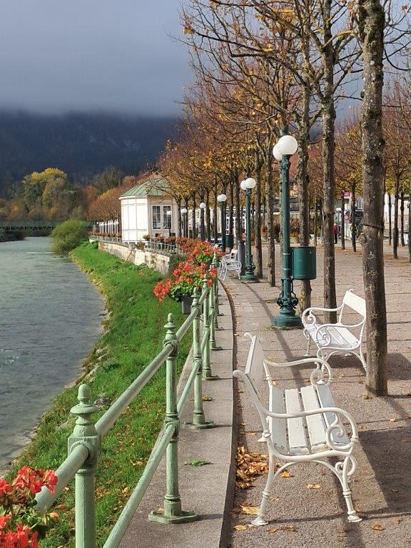 Der Name Maria im Schatten kommt wohl daher, dass die gotische, sehr sehenswerte Kirche am Fuße eines steilen Waldhanges errichtet worden ist. Heute liegt unmittelbar oberhalb der Kirche die Bundesstraße. In der Kirche mit der gotischen Marienstatue am Hochaltar begrüßte uns der Ortspfarrer der mit ca. 200 Katholiken kleinsten Pfarre Oberösterreichs. Wir feierten die Hl. Messe in unseren persönlichen und gemeinschaftlichen Anliegen. Nach einer kurzen Kirchenbesichtigung und der Möglichkeit des Kaufes von Rosenkränzen, die anlässlich des 680-jährigen Kirchenjubiläums geweiht worden waren, fuhren wir weiter in die alte Kaiserstadt Bad Ischl, wo sich der Nebel lichtete und die Sonne die Herbstfarben zum Strahlen brachte. Nach einem kurzen Spaziergang am Kongresspark vorbei bzw einem Flanieren entlang der Promenade zum Cafe Zauner nahmen wir im k.u.k. Hofwirt das Mittagessen ein. So gestärkt kehrten wir nach einem kurzen Rundgang zum Autobus zurück, der uns sicher ins Almtal heimbrachte.
