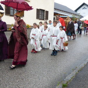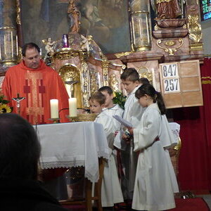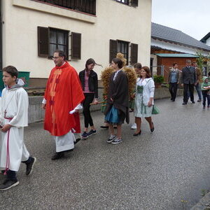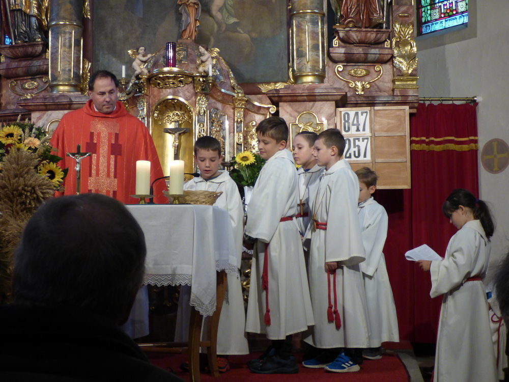 Das Erntedankfest ist im Ablauf des Kirchenjahres ein Fixpunkt, weil in besonderer Weise Gott, der Schöpfer der Welt, für die Gaben der Natur und eine gute Ernte gepriesen und verehrt wird. Zur Vorbereitung wurde einige Tage vorher von fleißigen Händen die Erntekrone aus den Garben von Gerste, Roggen, Hafer und Weizen gebunden. Auch einige Kukuruzkolben und Äpfel schmückten die Erntekrone. Am Erntedanksonntag, dem 18. September 2022, versammelten wir uns beim Pfarrheim, um in kurzer Prozession zur Kirche zu gehen. Leider zeigte sich das Wetter von seiner unfreundlichen Seite: Wind, Kälte und Regen begleiteten die Prozession. Aber der Regen von heute ist die Ernte des nächsten Jahres. Die Musikkapelle Sankt Konrad begleitete zusammen mit Goldhaubenfrauen und Ministranten den Zug. Fünf Firmlinge des letzten Jahres trugen die Erntekrone in die Kirche. Der Kirchenchor sang die Kirchberger Messe von Lorenz Maierhofer. Ministranten erzählten in einer Geschichte von der Bedeutung eines Laibes Brot, das in einer Zeit des Hungers zum Zeichen der Hilfsbereitschaft und Nächstenliebe wurde.