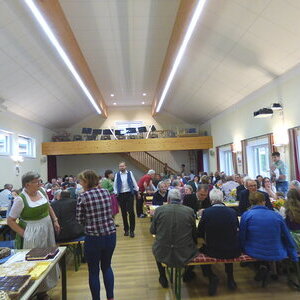 Nach der Heiligen Messe luden die Mitglieder des im März neu gewählten Pfarrgemeinderates ins Pfarrheim zum Pfarrfest ein. Ein Ensemble der Musikkapelle unter der Leitung von Obmann Christian Hummer sorgte für gute musikalische Stimmung. PGR-Obmann Johann Pühringer begrüßte die Anwesenden, namentlich Bürgermeister Herbert Schönberger, Gemeinde-Vorstand Ilse Hummer sowie Ehrenbürger und Alt-Bürgermeister Franz Steinhäusler.