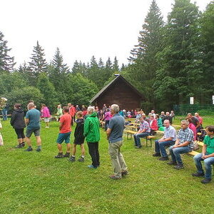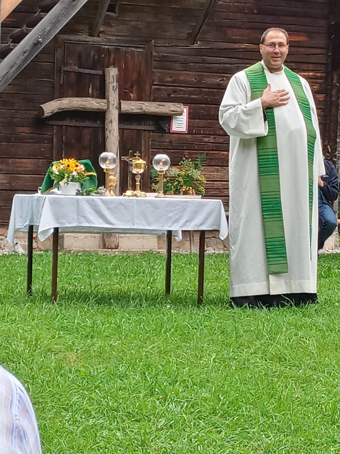 Seit über zwanzig Jahren ladet die Katholische Männerbewegung Sankt Konrad zur Sonntagsmesse in die Schrattenau ein. In den vergangenen Jahren leitete die Messe die Sommerferien ein, heuer das letzte Drittel, weil im Juli das regnerische Wetter die Feier verhinderte. So kamen wir am 22. August auf dem Gelände des alten königlichen Jagdschlosses Schratten zusammen. Leider hatte es am Morgen dieses Sonntages in einigen Teilen des Einzugsgebietes geregnet. Trotzdem kamen fast 90 Mitfeiernde aus Scharnstein, Viechtwang, St. Konrad, Grünau, Gschwandt, Kirchham und darüber hinaus zum Lobpreis des Schöpfers und Erlöser zusammen. Das Bläserquartett der Musikkapelle St. Konrad unter der Leitung von Christian Hummer gestaltete die Messe musikalisch. Nach der geistigen Nahrung konnten wir uns für den Abstieg mit Knacker und Semmeln stärken. Vergelt´s Gott den Vorstandsmitgliedern der Männerbewegung und ihren Helferinnen für den Transport der Bänke und für die Besorgung und Zurverfügungstellung des Verpflegungsproviantes.