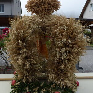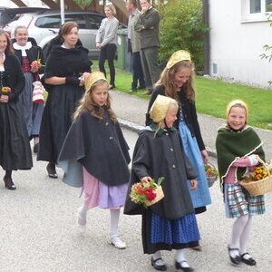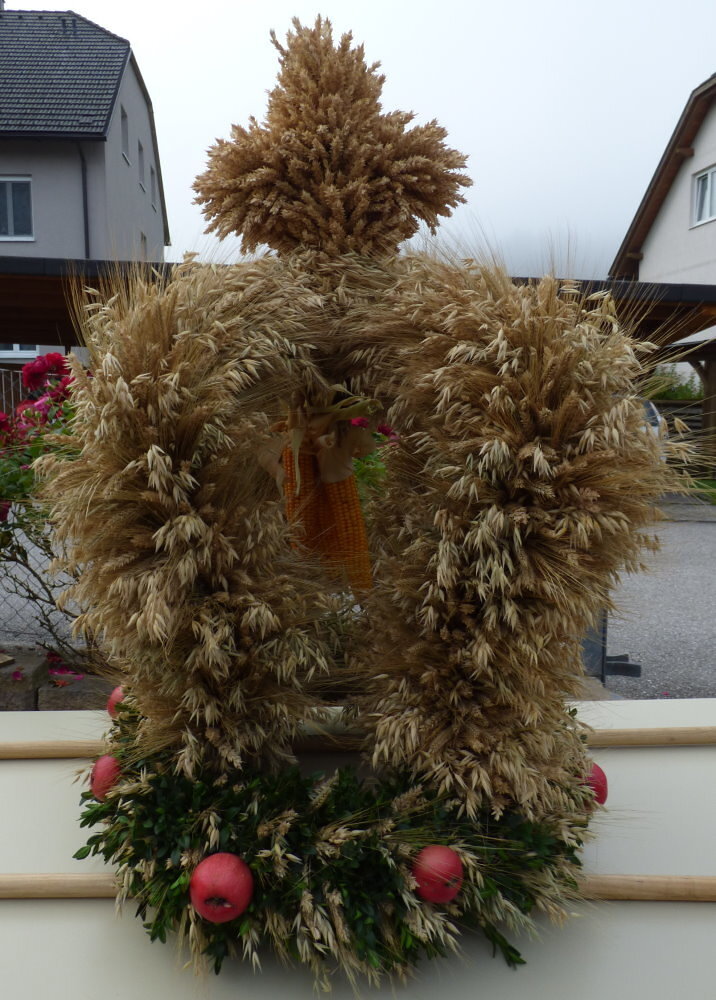 Dem Herrgott, dem Schöpfer aller Gaben, dankten wir beim Erntedankfest dafür, dass wir ausreichend zu essen und zu trinken haben. Symbol der Dankbarkeit ist die Erntekrone, die in Prozession vom Pfarrheim mit Begleitung der Musikkapelle St. Konrad, den Goldhauben- und Kopftuchfrauen sowie Kindern der Volksschule in die Kirche getragen wurde. Die hl. Messe wurde musikalisch vom Kirchenchor und einem Sextett der Musikkapelle aus Bass, Hornistin, Tenorhorn und Trompetern gestaltet. Volksschulkinder bereicherten unter Leitung der neuen Religionslehrerin Bettina Lehner die Feier mit Lied und Text.