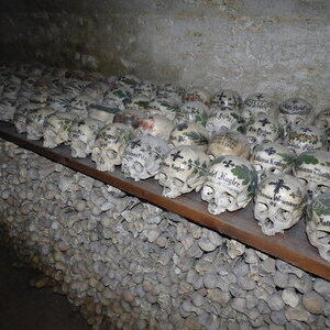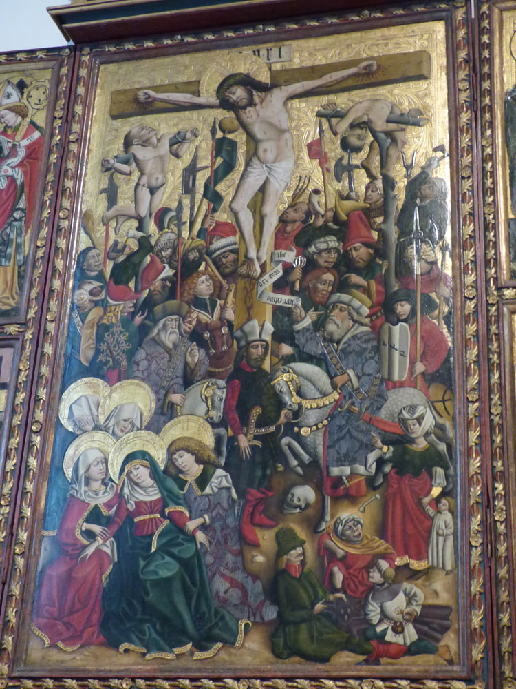 Zum kleinen Knappenaltar aus dem 15. Jhdt. erfuhren wir, dass die Flügel nach einem Diebstahl vor 30 Jahren in Italien gefunden und wieder zurück geholt worden sind. Einige besuchten dann die auf dem Friedhof gelegene Michaelskapelle, in der die handbemalten Schädelskelette der frühen Hallstätter aufbereitet sind.