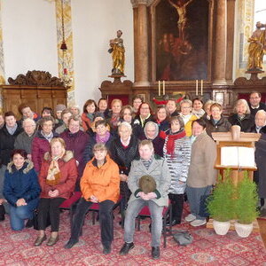Unsere KFB-Herbstwallfahrt führte uns heuer nach Oberthalheim zur wunderschön renovierten St. Anna Kirche. Nach dem Gottesdienst konnten wir uns die sehr freundliche und helle Kirche besichtigen. Anschließend fuhren wir zum gemeinsamen Mittagessen ins Gasthaus Fehringer-Himmelreich. Das Wetter zeigte anfangs einen regnerischen trüben Novemberhimmel, der bei der Heimfahrt aufbrach. Somit konnten ein paar Sonnenstrahlen die letzten Farben des Herbstes zum Erstrahlen bringen.