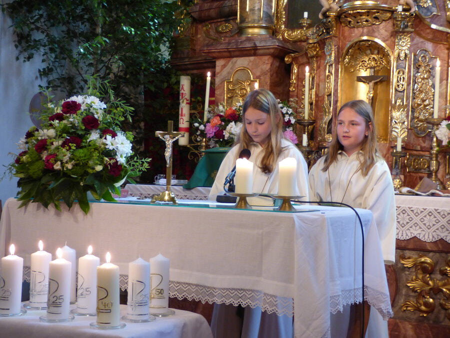 Beim heurigen Fest der Ehejubilare feierten fünf Paare mit. Ein Rubinhochzeitspaar (40 Jahre) und vier Silberhochzeitspaare erneuerten ihren Ehebund und entzündeten eine Jubelkerze, ein Geschenk der KFB St. Konrad. Von der Pfarre erhielt jedes Paar eine Rose und einen Segenswunsch, nachdem Ministrantinnen ein Gedicht für die Jubelpaare aufsagten. Bürgermeister Herbert Schönberger gratulierte den Jubelpaaren und dankte für ihren Einsatz für das öffentliche Wohl und hob die Vorbildwirkung für junge Menschen von heute hervor. Im Anschluss gingen die Paare nach Einladung von Pfarre und Gemeinde zum GH Silbermair und ließen den Tag kulinarisch ausklingen.